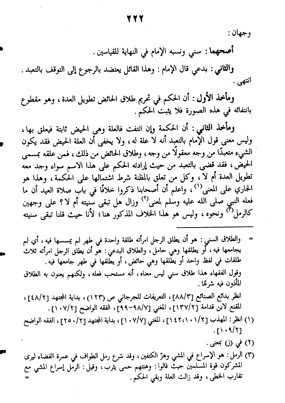 ومأخذ الثاني: أن الحكمة وإن انتفت فالعلة وهي الحيض ثابتة فيعلق بها، وليس معنى قول الإمام بالتعبد أنه لا علة له، ولا يخفى أن العلة الحيض فقد يكون الشيء متعبداً من وجه معقولاً من وجه، وطلاق الحائض من ذلك، فمن علقه بمسمى الحيض، فقد قضى بالتعبد من حيث إرادته الحكم على هذا الاسم سواء وجد معه تطويل العدة أم لا، وكل من تعلق بالمظنة شرط اشتمالها على الحكمة، وهذا هو الجاري على المعنى، واعلم أن أصحابنا ذكروا خلافاً في باب صلاة العيد أن ما فعله النبي صَلَّى اللهُ عَلَيْهِ وَسَلَّمَ لمعنى وزال هل تبقى سنيته أم لا؟ على وجهين كالرمل ونحوه، وليس هو هذا الخلاف المذكور هنا، لأنا حيث قلنا تبقى سنيته