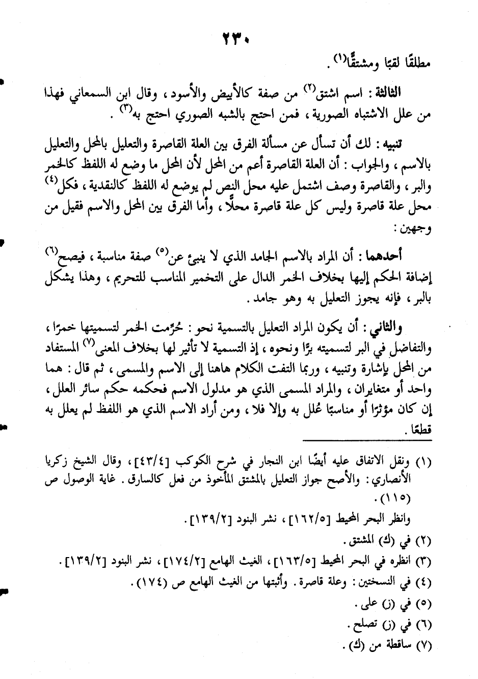 الثالثة: اسم اشتق من صفة كالأبيض والأسود، وقال ابن السمعاني فهذا من علل الاشتباه الصورية، فمن احتج بالشبه الصوري احتج به.