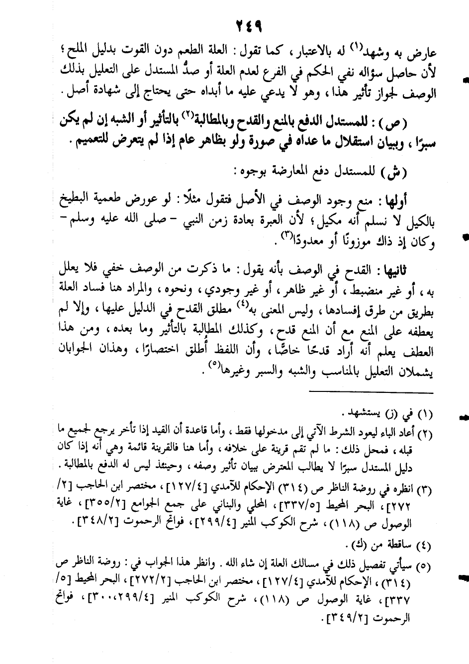 ثانيها: القدح في الوصف بأنه يقول: ما ذكرت من الوصف خفي فلا يعلل به، أو غير منضبط، أو غير ظاهر، أو غير وجودي، ونحوه، والمراد هنا فساد العلة بطريق من طرق إفسادها، وليس المعنى به مطلق القدح في الدليل عليها، وإلا لم يعطفه على المنع مع أن المنع قدح، وكذلك المطالبة بالتأثير وما بعده، ومن هذا العطف يعلم أنه أراد قدحاً خاصاً، وأن اللفظ أطلق اختصاراً وهذان الجوابان يشملان التعليل بالمناسب والشبه والسبر وغيرها.