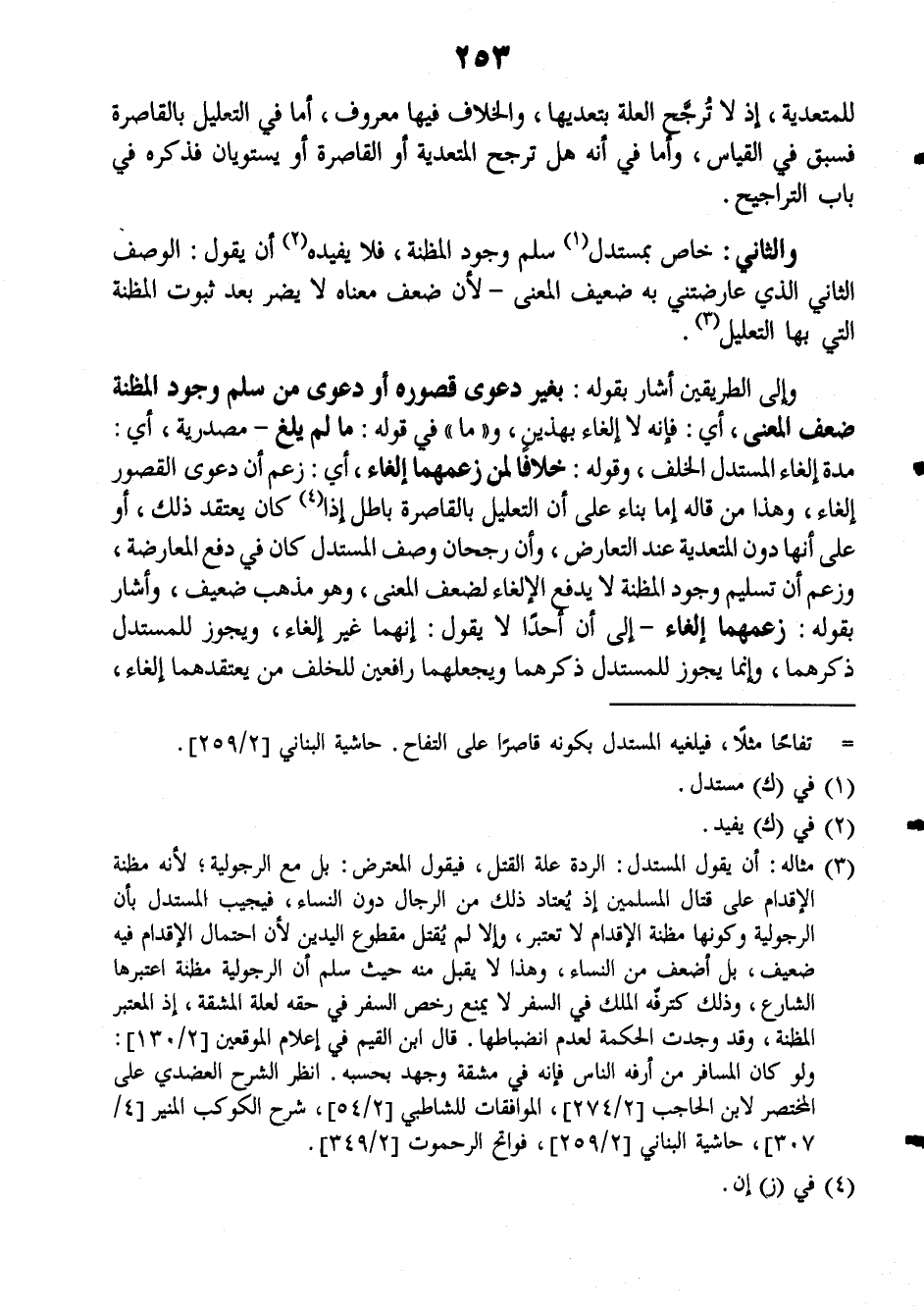 والثاني: خاص بمستدل سلم وجود المظنة، فلا يفيده، أن يقول: الوصف الثاني الذي عارضتني به ضعيف المعنى لأن ضعف معناه لا يضر بعد ثبوت المظنة التي بها التعليل.