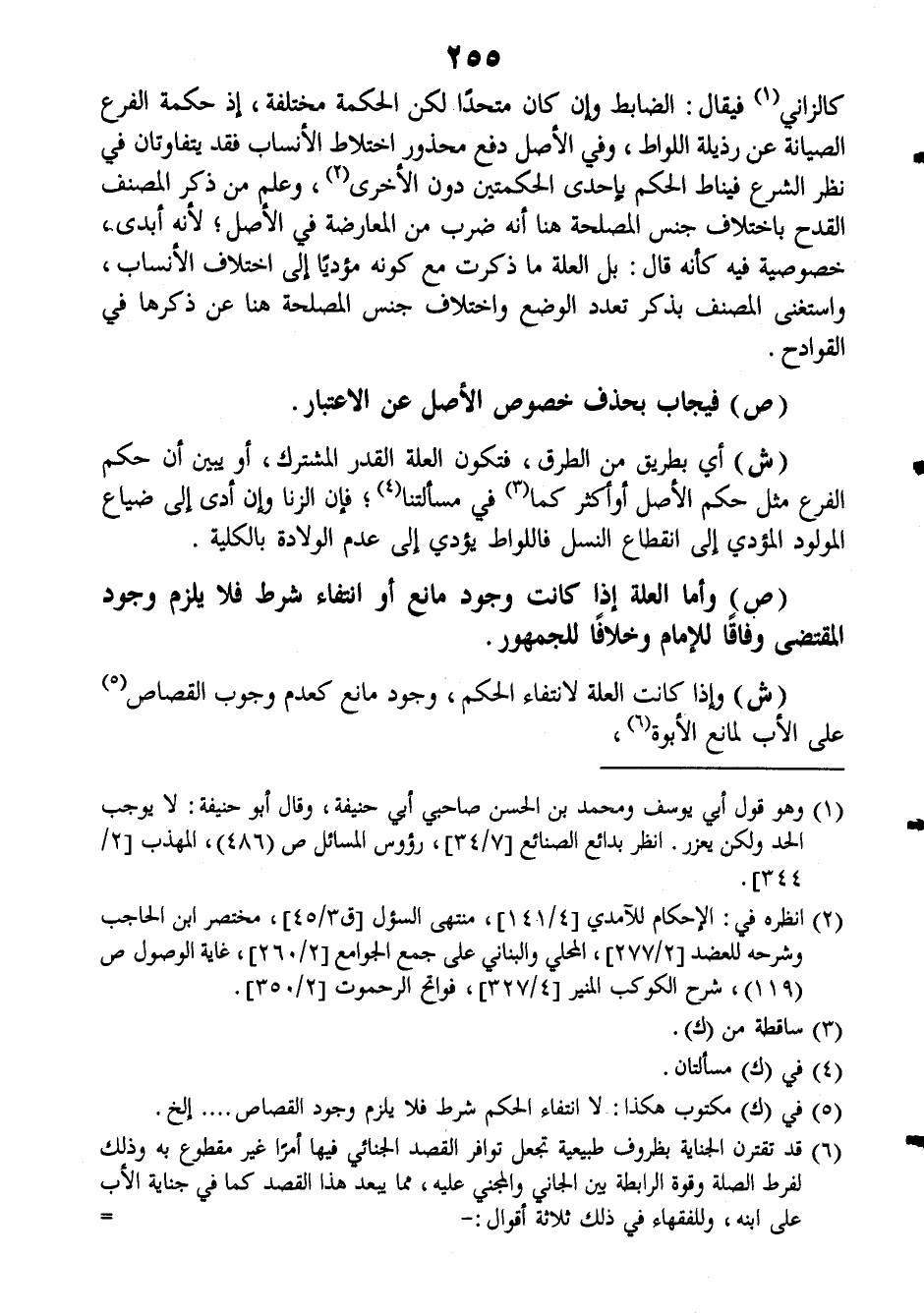 (ش): وإذا كانت العلة لانتفاء الحكم، وجود مانع كعدم وجوب القصاص على الأب لمانع الأبوة.