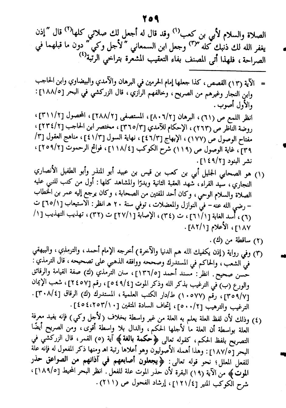 الصلاة والسلام لأبي بن كعب وقد قال له أجعل لك صلاتي كلها قال ((إذن يغفر الله لك ذنبك كله)) وجعل ابن السمعاني لأجل وكي دون ما قبلهما في الصراحة، فلهذا أتى المصنف بفاء التعقيب المشعرة بتراخي الرتبة.