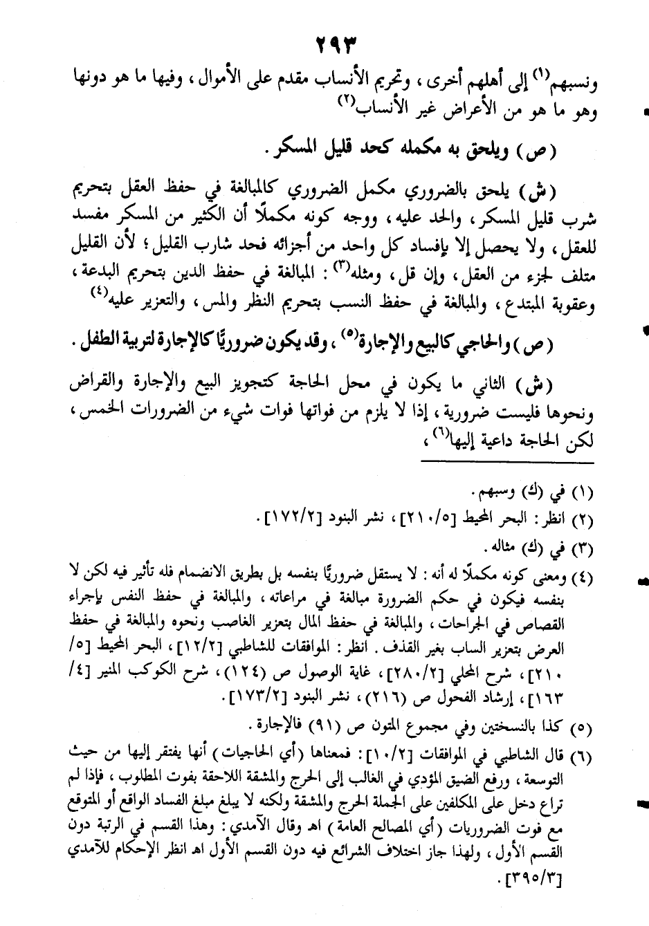(ش): يلحق بالضروري مكمل الضروري كالمبالغة في حفظ العقل بتحريم شرب قليل المسكر، والحد عليه، ووجه كونه مكملاً أن الكثير من المسكر مفسد للعقل، ولا يحصل إلا بإفساد كل واحد من أجزائه فحد شارب القليل، لأن القليل متلف لجزء من العقل، وإن قل، ومثله: المبالغة في حفظ الدين بتحريم البدعة، وعقوبة المبتدع، والمبالغة في حفظ النسب بتحريم النظر والمس، والتعزير عليه.