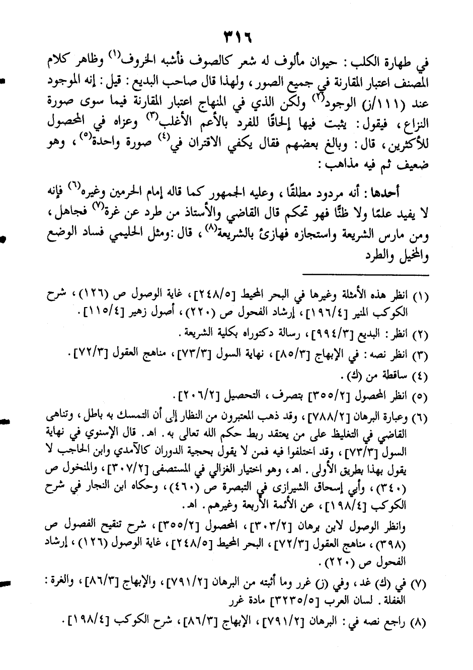 في طهارة الكلب: حيوان مألوف له شعر كالصوف فأشبه الخروف وظاهر كلام المصنف اعتبار المقارنة في جميع الصور ولهذا قال صاحب (البديع): قيل: إنه الموجود عند (١١١/ز) الوجود ولكن الذي في (المنهاج) اعتبار المقارنة فيما سوى صورة النزاع، فيقول: يثبت فيها إلحاقاً للفرد بالأعم الأغلب وعزاه في (المحصول) للأكثرين، قال: وبالغ بعضهم فقال يكفي الاقتران في صورة واحدة وهو ضعيف ثم فيه مذاهب: