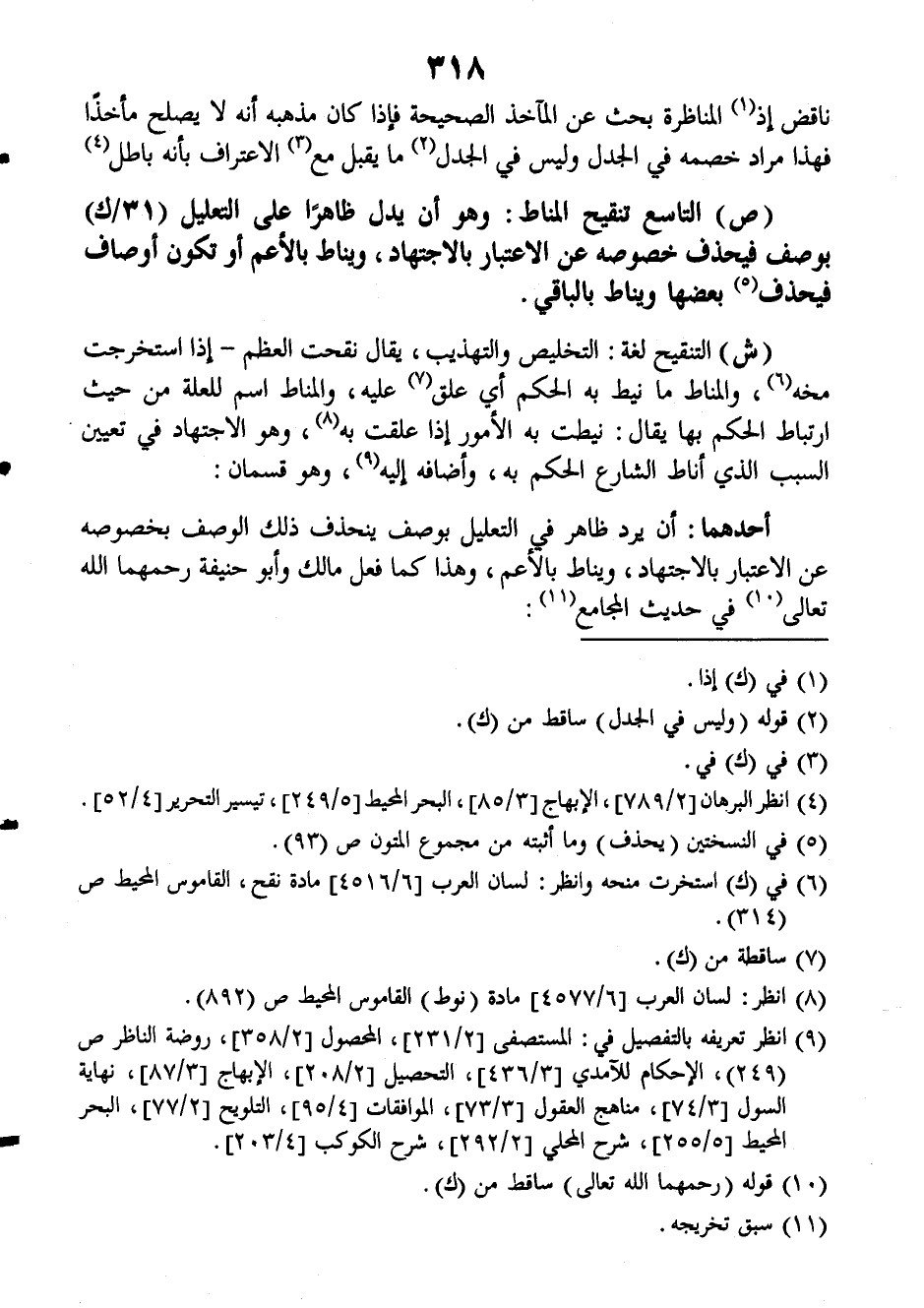 (ش): التنقيح لغة: التخليص والتهذيب، يقال نقحت العظم ـ إذا استخرجت مخه والمناط ما نيط به الحكم أي علق عليه، والمناط اسم للعلة من حيث ارتباط الحكم بها يقال: نيطت به الأمور إذا علقت به وهو الاجتهاد في تعيين السبب الذي أناط الشارع الحكم به، وأضافه إليه وهو قسمان: