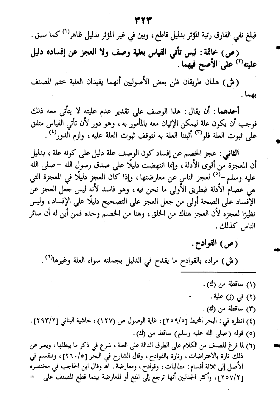 (ش): مراده بالقوادح ما يقدح في الدليل بجملته سواء العلة وغيرها.