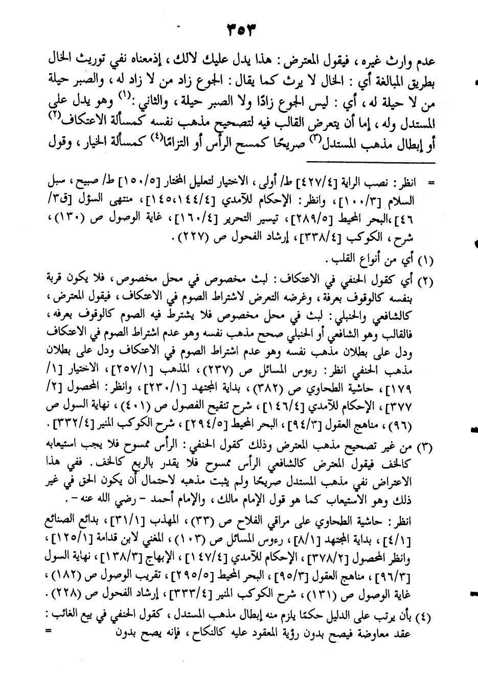 عدم وارث غيره، فيقول المعترض: هذا يدل عليك لا لك، إذ معناه نفي توريث الخال بطريق المبالغة أي: الخال لا يرث كما يقال: الجوع زاد من لا زاد له، والصبر حيلة من لا حيلة له، أي: ليس الجوع زاداً ولا الصبر حيلة، والثاني: وهو يدل على المستدل وله، إما أن يتعرض القالب فيه لتصحيح مذهب نفسه كمسألة الاعتكاف أو إبطال مذهب المستدل صريحاً كمسح الرأس أو التزاماً كمسألة الخيار، وقول