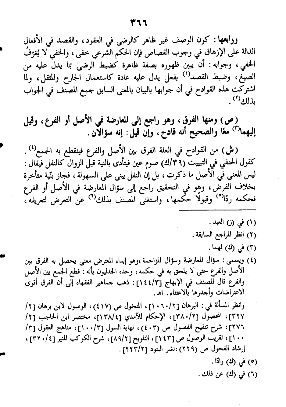 ورابعها: كون الوصف غير ظاهر كالرضى في العقود، والقصد في الأفعال الدالة على الإزهاق في وجوب القصاص فإن الحكم الشرعي خفي، والخفي لا يعرف الخفي، وجوابه: أن يبين ظهوره بصفة ظاهرة كضبط الرضى بما يدل عليه من الصيغ، وضبط القصد بفعل يدل عليه عادة كاستعمال الجارح والمثقل، ولما اشتركت هذه القوادح في أن جوابها بالبيان بالمعنى السابق جمع المصنف في الجواب بذلك.