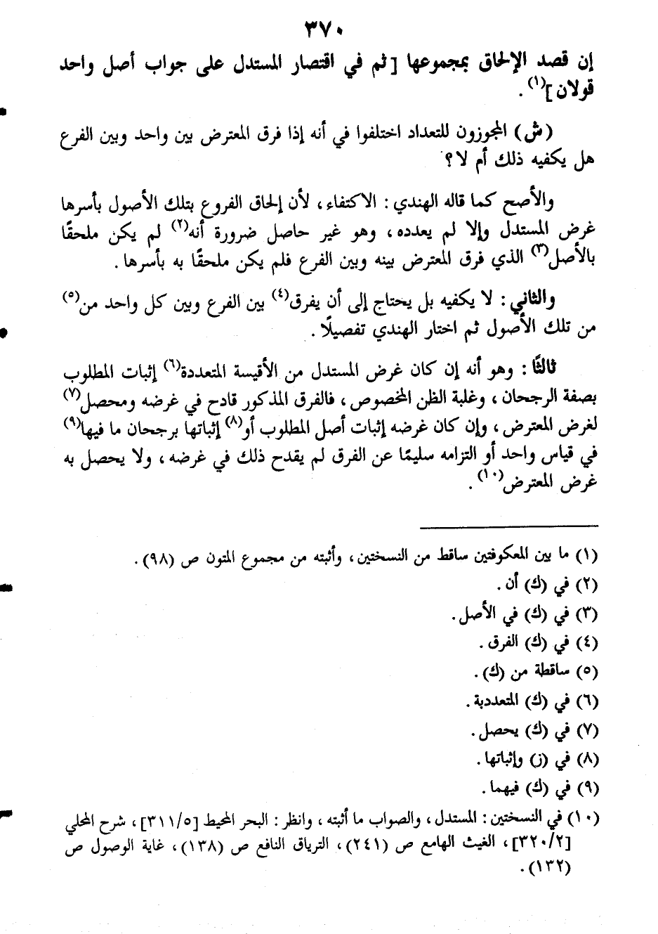 إن قصد الإلحاق بمجموعها (ثم في اقتصار المستدل على جواب أصل واحد قولان).