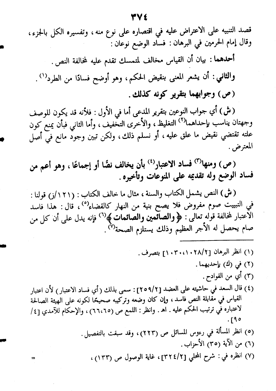 قصد التنبيه على الاعتراض عليه في اقتصاره على نوع منه، وتفسيره الكل بالجزء، وقال إمام الحرمين في (البرهان): فساد الوضع نوعان: