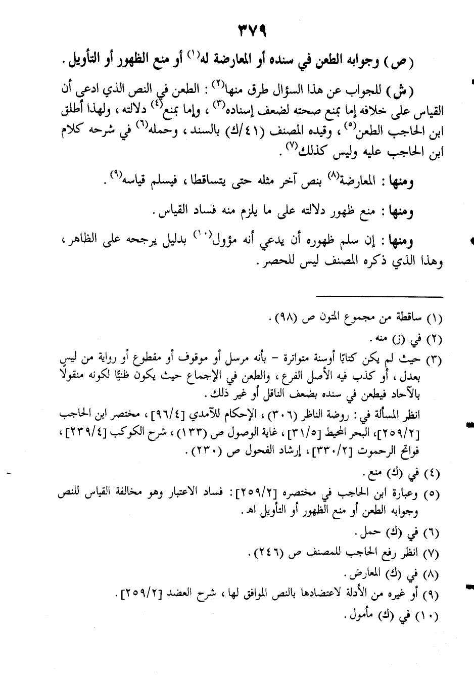 (ش): للجواب عن هذا السؤال طرق منها: الطعن في النص الذي ادعى أن القياس على خلافه إما بمنع صحته لضعف إسناده، وإما بمنع دلالته ولهذا أطلق ابن الحاجب الطعن وقيده المصنف (٤١/ك) بالسند، وحمله في شرحه كلام ابن الحاجب عليه وليس كذلك.