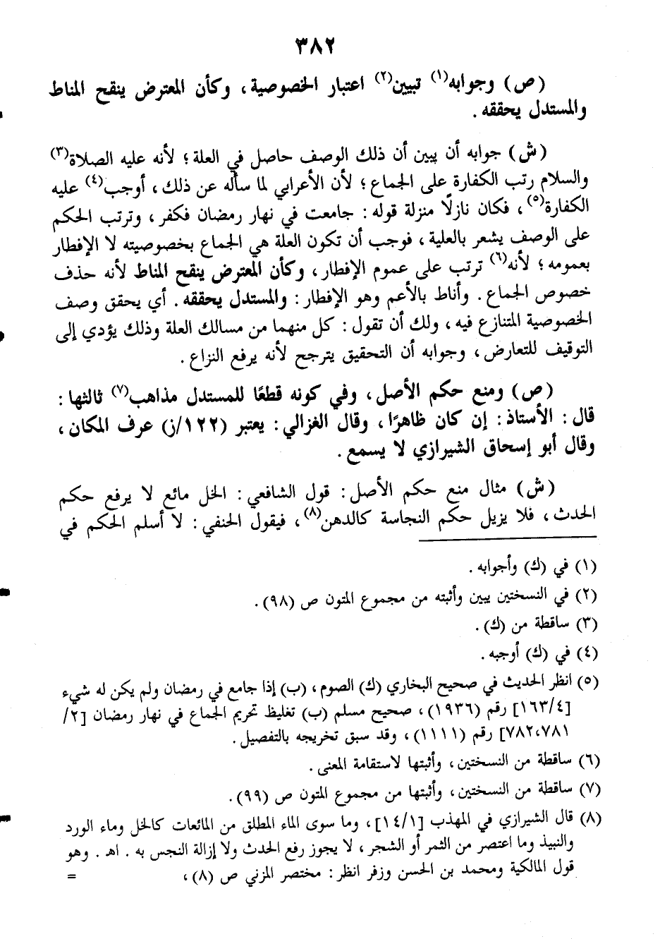 (ش): مثال منع حكم الأصل: قول الشافعي: الخل مائع لا يرفع حكم الحدث، فلا يزيل حكم النجاسة كالدهن، فيقول الحنفي: لا أسلم الحكم في