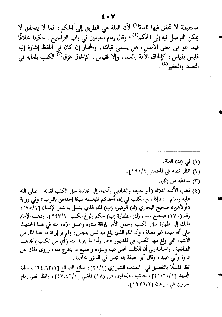 مستنبطة لا تحقق فيها للعلة، لأن العلة هي الطريق إلى الحكم، فما لا يتحقق لا يمكن التوصل فيه إلى الحكم، وقال إمام الحرمين في باب التراجيح: حكينا خلافاً فيما هو في معنى الأصل، هل يسمى قياساً، والمختار إن كان في اللفظ إشارة إليه فليس بقياس، كإلحاق الأمة بالعبد، وإلا فقياس، كإلحاق عرق الكلب بلعابه في التعدد والتعفير.