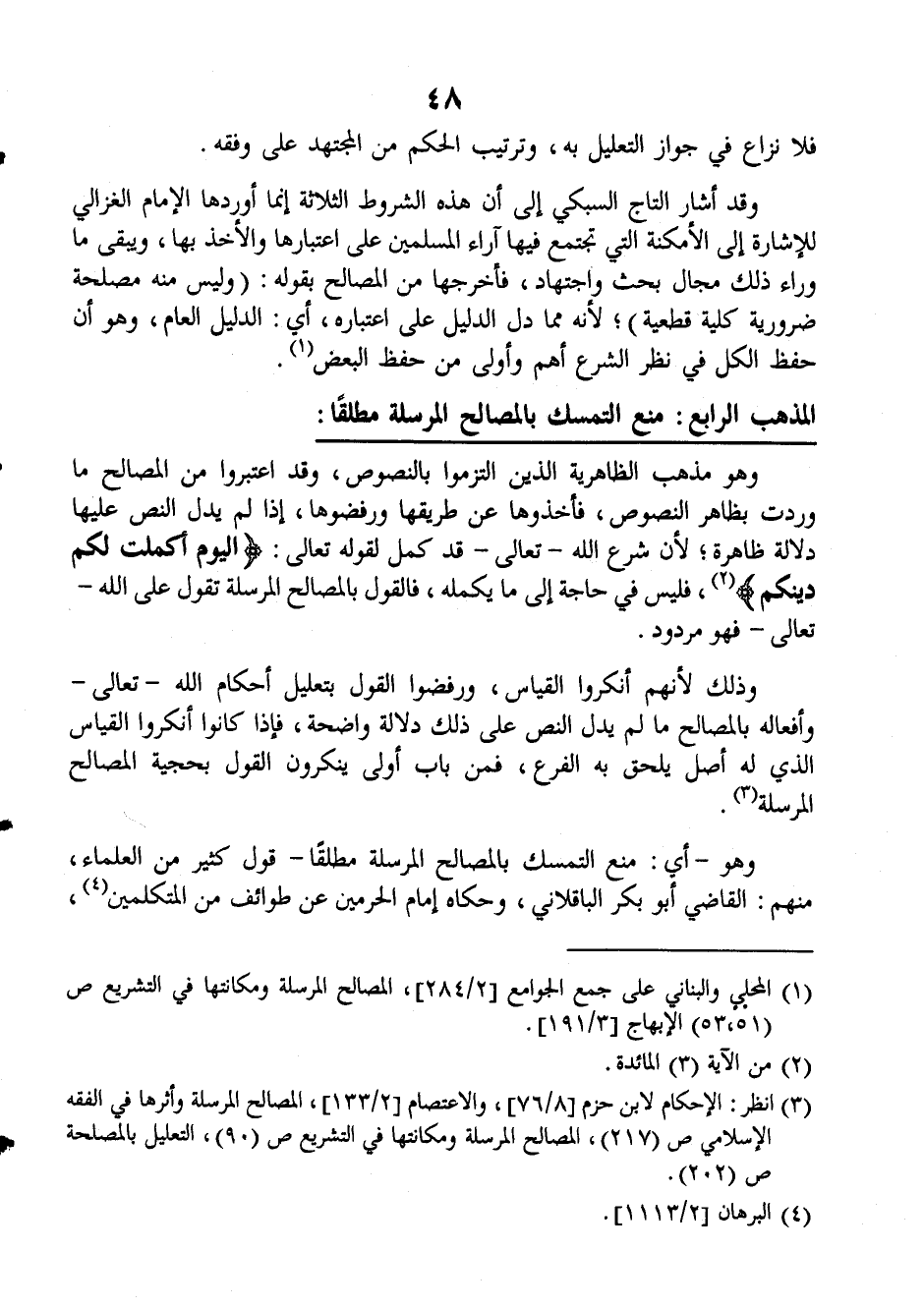 وهو ـ أي: منع التمسك بالمصالح المرسلة مطلقاً ـ قول كثير من العلماء منهم: القاضي أبو بكر الباقلاني، وحكاه إمام الحرمين عن طوائف من المتكلمين