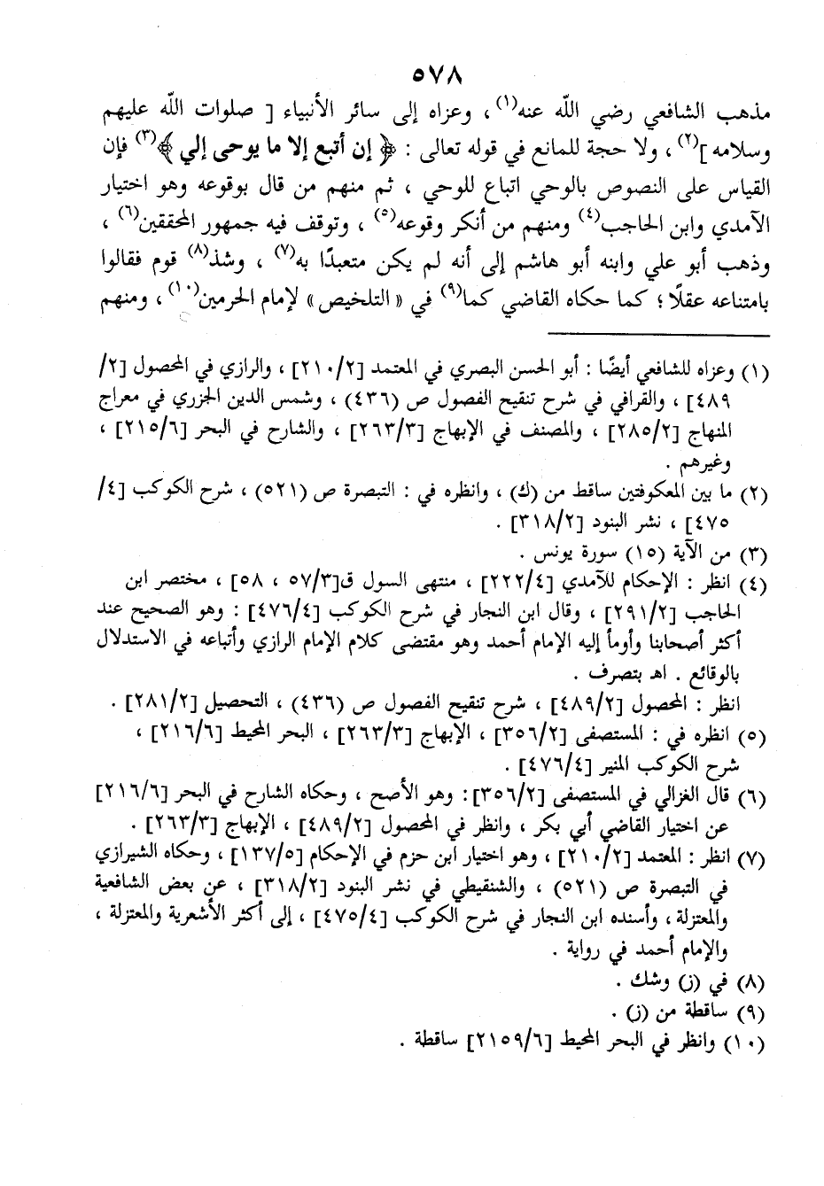 مذهب الشافعي رضي الله عنه وعزاه إلى سائر الأنبياء صلوات الله عليهم وسلامه ولا حجة للمانع في قوله تعالى: {إن أتبع إلا ما يوحى إلي} فإن القياس على النصوص بالوحي اتباع للوحي، ثم منهم من قال بوقوعه وهو اختيار الآمدي وابن الحاجب ومنهم من أنكر وقوعه وتوقف فيه جمهور المحققين وذهب أبو علي وابنه أبو هاشم إلى أنه لم يكن متعبدا به وشذ قوم فقالوا بامتناعه عقلا، كما حكاه القاضي كما في (التخليص) لإمام الحرمين ومنهم