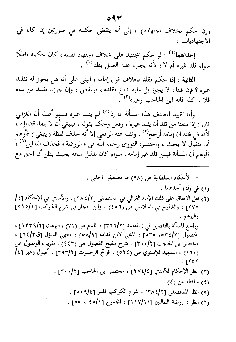 وأما تقييد المصنف هذه المسألة بما إذا لم يقلد غيره فسهو أصله أن الغزالي قال: إذا معنا من قلد أن يقلد غيره، وفعل وحكم بقوله فينبغي أن لا ينفذ قضاؤه لأنه في ظنه أن إمامه أرجح ونقله عنه الرافعي إلا أنه حذف لفظة (ينبغي) فأوهم أنه منقول لا بحث، واختصره النووي رحمه الله في (الروضة) فحذف التعليل فأوهم أن المسألة فيمن قلد غير إمامه، سواء كان لدليل ساقه بحيث يظن أن الحق مع