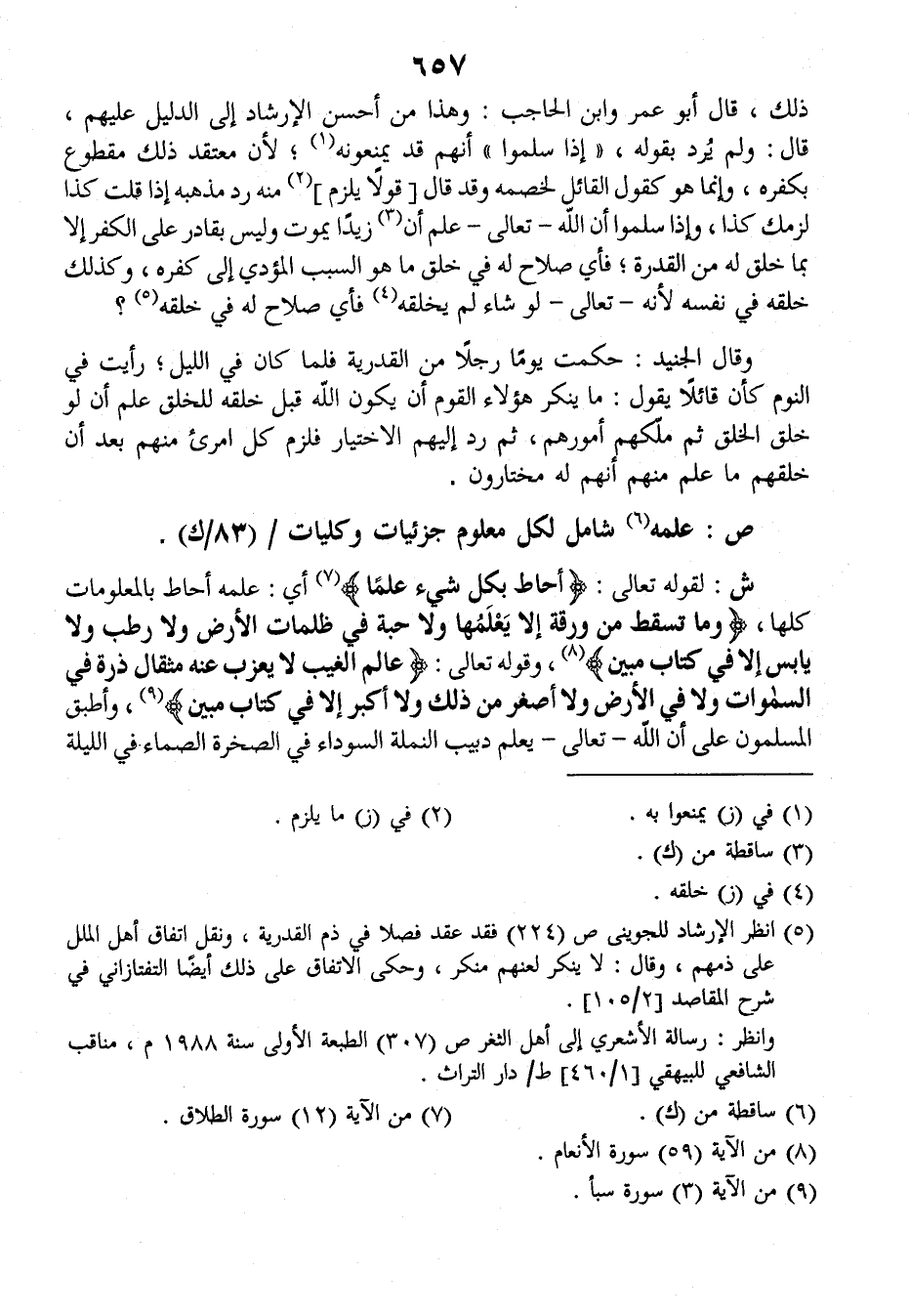 ص: علمه شامل لكل معلوم جزئيات وكليات / (٨٣/ك).
