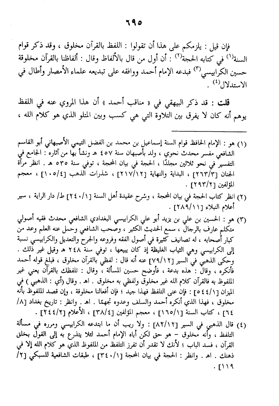 قلت: قد ذكر البيهقي في (مناقب أحمد) أن هذا المروي عنه في اللفظ يوهم أنه كان لا يفرق بين التلاوة التي هي كسب وبين المتلو الذي هو كلام الله
