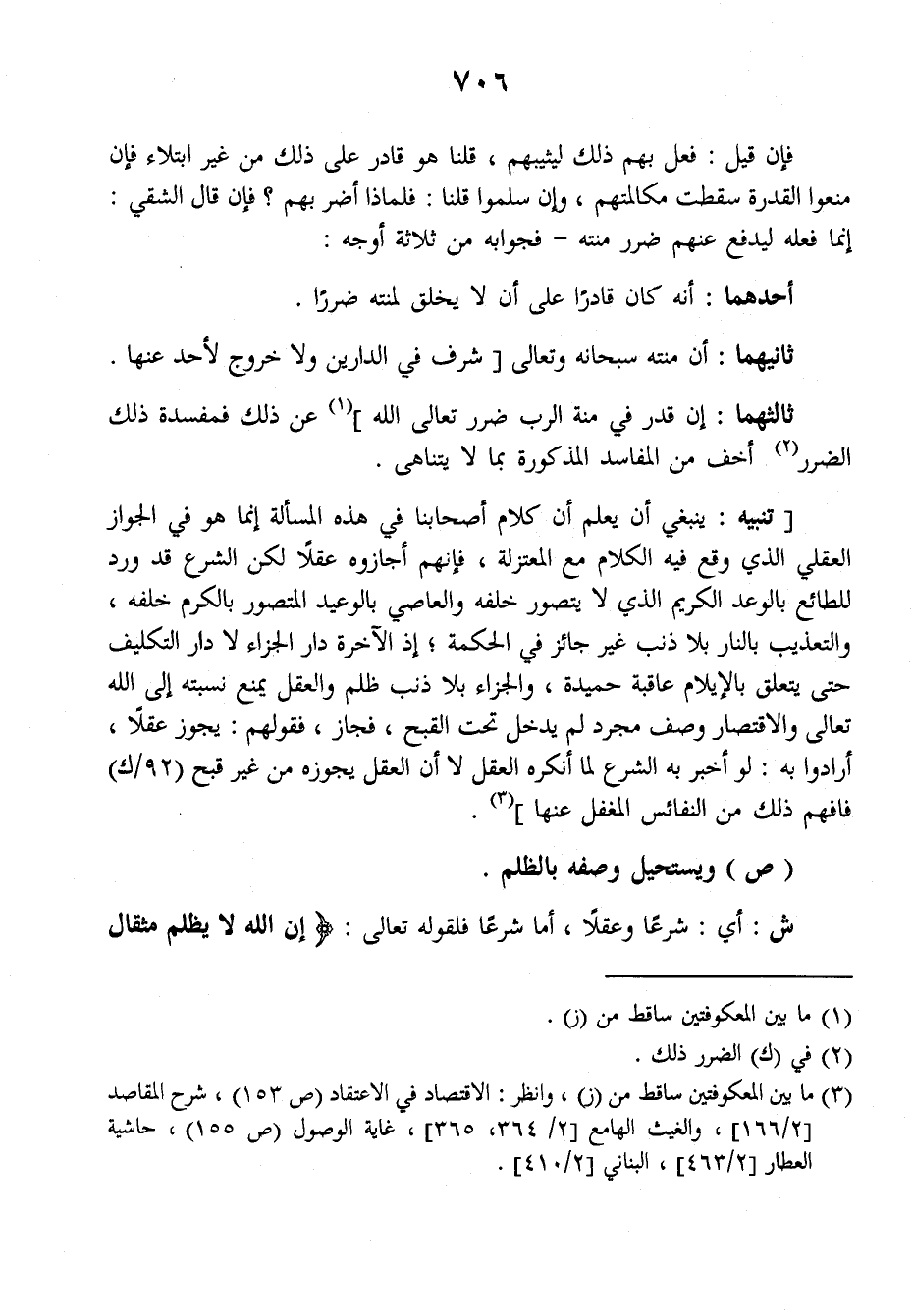 ش: أي: شرعا وعقلا، أما شرعا فلقوله تعالى: {إن الله لا يظلم مثقال
