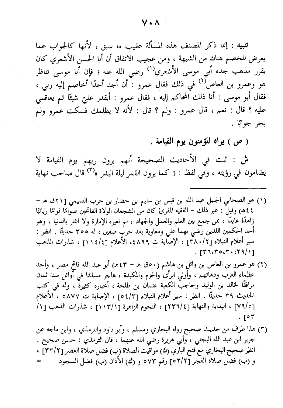 ش: ثبت في الأحاديث الصحيحة أنهم يرون ربهم يوم القيامة لا يضامون في رؤيته، وفي لفظ: ((كما يرون القمر ليلة البدر)) قال صاحب (نهاية
