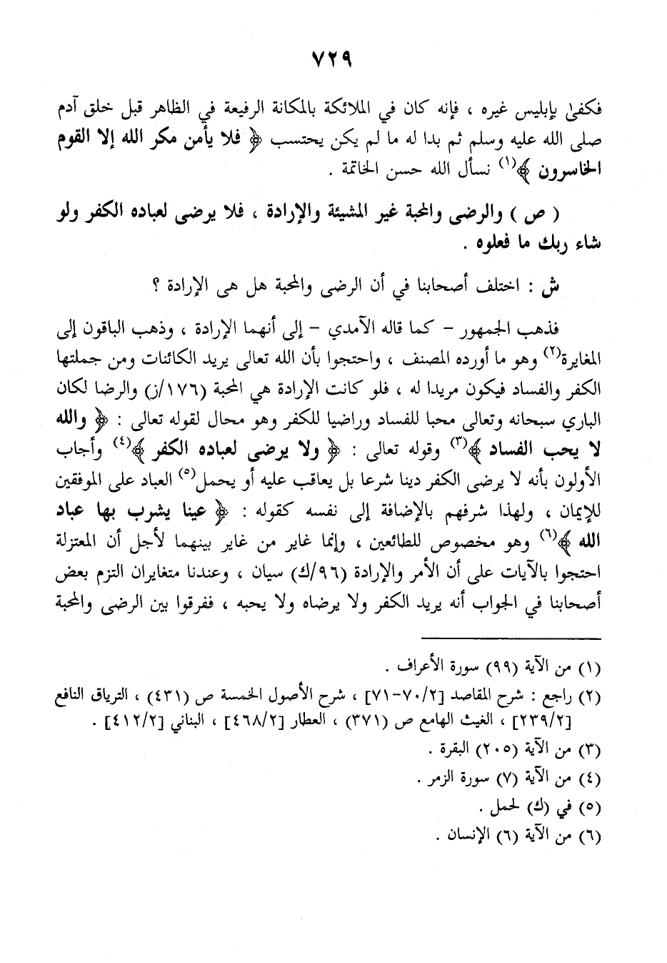 (ص) والرضى والمحبة غير المشيئة والإرادة فلا يرضى لعباده الكفر ولو شاء ربك ما فعلوه.