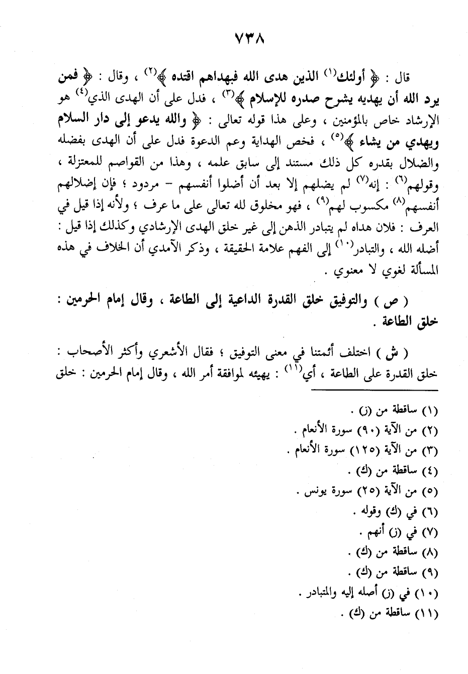 (ش) اختلف أئمتنا في معنى التوفيق فقال الأشعري وأكثر الأصحاب: خلق القدرة على الطاعة، أي: يهيئه لموافقة أمر الله وقال إمام الحرمين: خلق