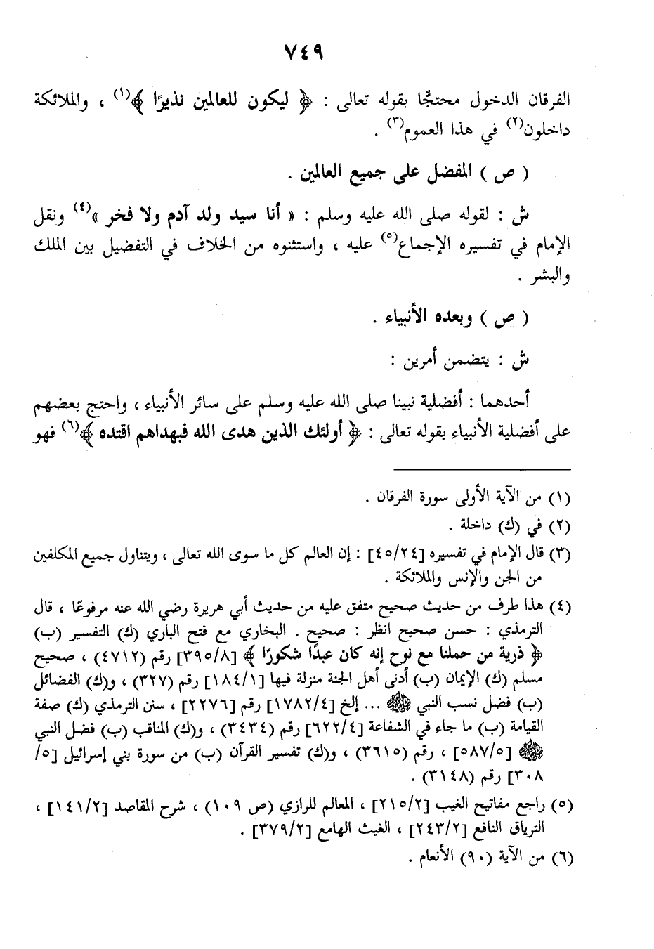 ش: لقوله صلى الله عليه وسلم: ((أنا سيد ولد آدم ولا فخر)) ونقل الإمام في تفسيره الإجماع عليه واستثنوه من الخلاف في التفضيل بين الملك والبشر.