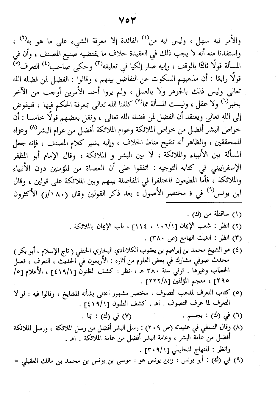 والأمر فيه سهل وليس فيه من الفائدة إلا معرفة الشيء على ما هو به واستفدنا منه أنه لا يجب ذلك في العقيدة خلاف ما يقتضيه صنيع المصنف، وأن في المسألة قولا ثالثا بالوقف وإليه صار إلكيا في تعليقه وحكى صاحب (التعرف) قولا رابعا: أن مذهبهم السكوت عن التفاضل بينهم وقالوا: الفضل لمن فضله الله تعالى وليس ذلك بالجوهر ولا بالعمل، ولم يروا أحد الأمرين أوجب من الآخر بخبر ولا عقل وليست المسألة مما كلفنا الله تعالى بمعرفة الحكم فيها، فليفوض إلى الله تعالى ويعتقد أن الفضل لمن فضله الله تعالى، ونقل بعضهم قولا خامسا: أن خواص البشر أفضل من خواص الملائكة وعوام الملائكة أفضل من عوام البشر وعزاه للمحققين والظاهر أنه تنقيح مناط الخلاف وإليه يشير كلام المصنف، فإنه جعل المسألة بين الأنبياء والملائكة، لا بين البشر والملائكة وقال الإمام أبو المظفر الإسفراييني في كتابه (التوجيه): اتفقوا على أن العصاة من المؤمنين دون الأنبياء والملائكة، فأما المطيعون فاختلفوا في المفاضلة بينهم وبين الملائكة على قولين وقال ابن يونس في (مختصر الأصول) بعد ذكر القولين وقال (١٨٠/ز) الأكثرون