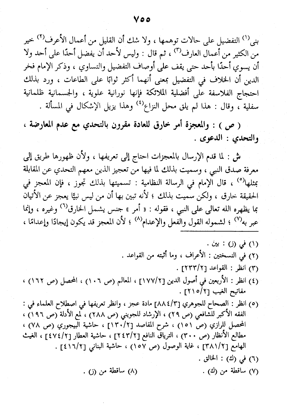 (ص): والمعجزة أمر خارق للعادة مقرون بالتحدث مع عدم المعارضة والتحدي: الدعوى.