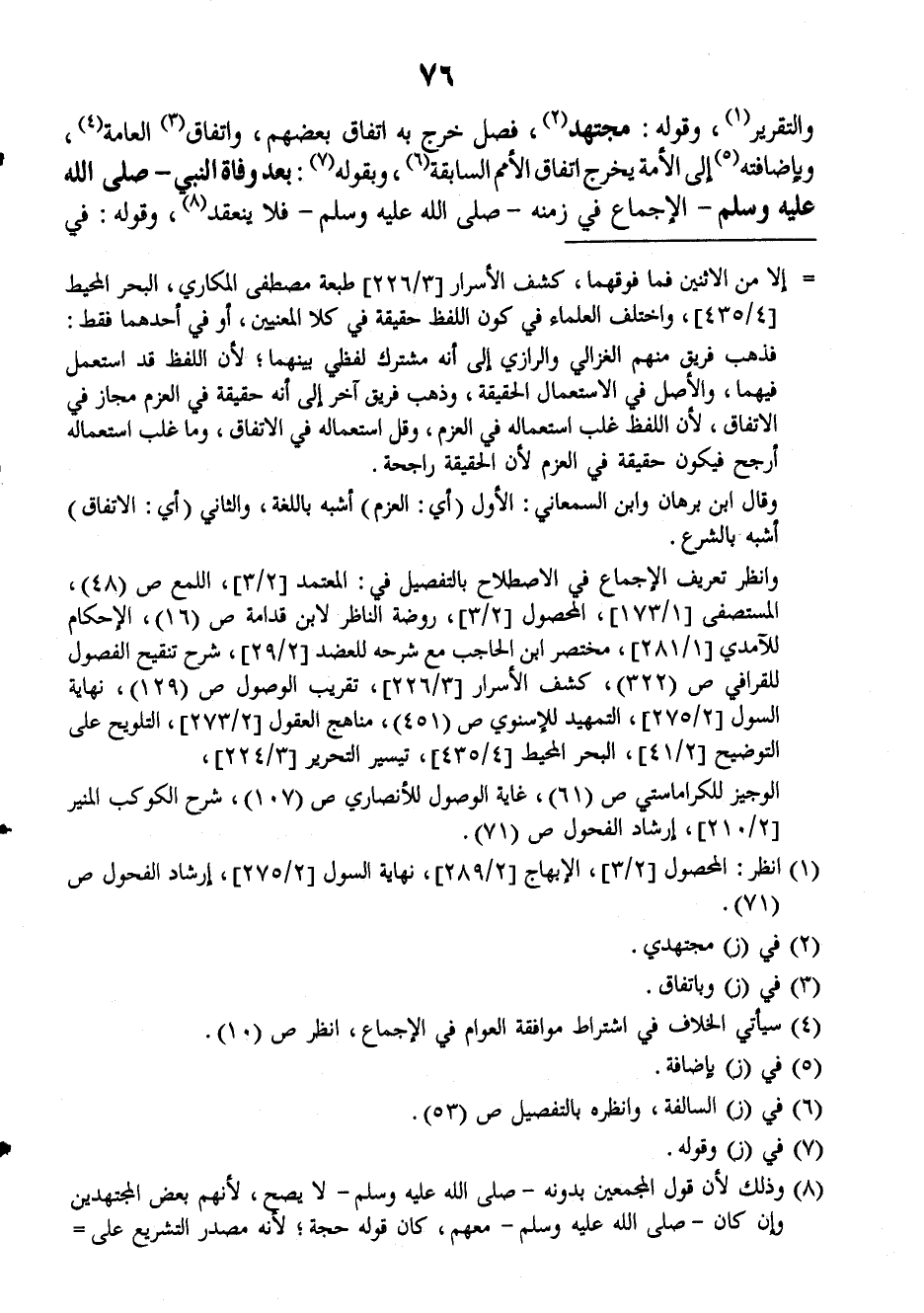 والتقرير، وقوله: مجتهد، فصل خرج به اتفاق بعضهم، واتفاق العامة، وبإضافته إلى الأمة يخرج اتفاق الأمم السابقة وبقوله: بعد وفاة النبي صَلَّى اللهُ عَلَيْهِ وَسَلَّمَ الإجماع في زمنه صَلَّى اللهُ عَلَيْهِ وَسَلَّمَ فلا ينعقد، وقوله: في