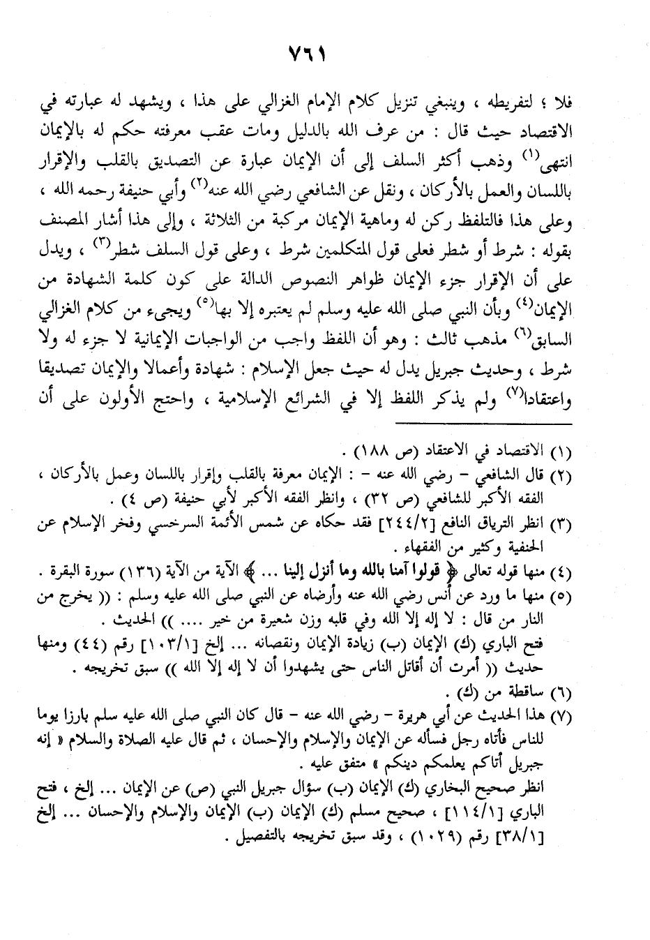 فلا لتفريطه وينبغي تنزيل كلام الإمام الغزالي على هذا، ويشهد له عبارته في (الاقتصاد) حيث قال: من عرف الله بالدليل ومات عقب معرفته حكم له بالإيمان انتهى.