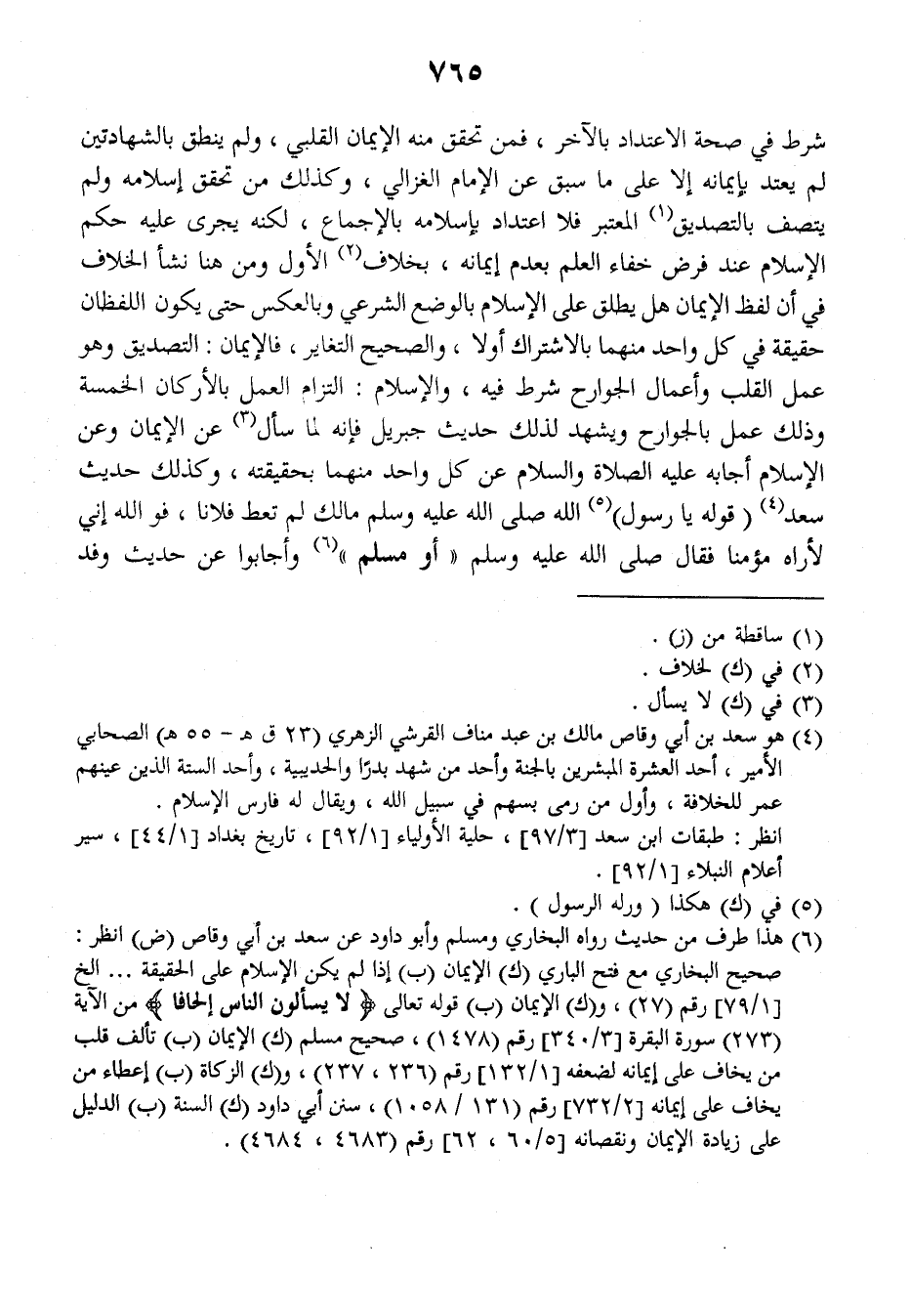 شرط في صحة الاعتداد بالآخر، فمن تحقق منه الإيمان القلبي، ولم ينطق بالشهادتين لم يعتد بإيمانه إلا على ما سبق عن الإمام الغزالي، وكذلك من تحقق إسلامه، ولم يتصف بالتصديق المعتبر فلا اعتداد بإسلامه بالإجماع، لكنه يجرى عليه حكم الإسلام عند فرض خفاء العلم بعدم إيمانه، بخلاف الأول ومن هنا نشأ الخلاف في أن لفظ الإيمان هل يطلق على الإسلام بالوضع الشرعي وبالعكس حتى يكون اللفظان حقيقة في كل واحد منهما بالاشتراك أولا، والصحيح التغاير، فالإيمان: التصديق وهو عمل القلب وأعمال الجوارح شرط فيه، والإسلام: التزام العمل بالأركان الخمسة وذلك عمل بالجوارح ويشهد لذلك حديث جبريل فإنه لما سأل عن الإيمان وعن الإسلام أجابه عليه الصلاة والسلام عن كل واحد منهما بحقيقته، وكذلك حديث سعد (قوله يا رسول) الله صلى الله عليه وسلم ما لك لم تعط فلانا، فوالله إني لأراه مؤمنا فقال صلى الله عليه وسلم: ((أو مسلم)) وأجابوا عن حديث وفد