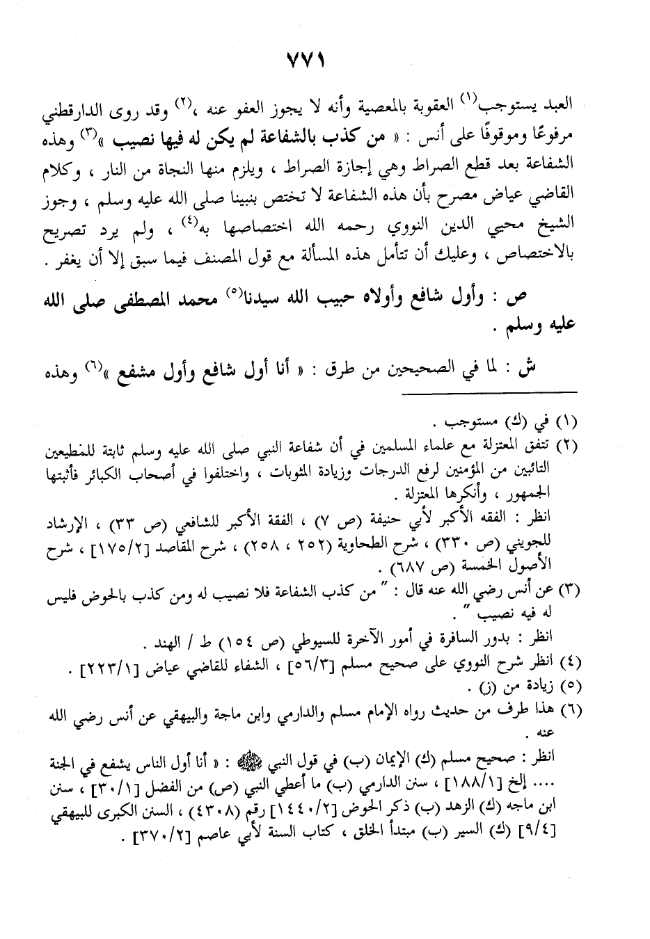 العبد يستوجب العقوبة بالمعصية وأنه لا يجوز العفو عنه وقد روى الدارقطني مرفوعا وموقوفا على أنس: (من كذب بالشفاعة لم يكن له فيها نصيب) وهذه الشفاعة بعد قطع الصراط وهي إجازة الصراط، ويلزم منها النجاة من النار، وكلام القاضي عياض مصرح بأن هذه الشفاعة لا تختص بنبينا صلى الله عليه وسلم وجوز الشيخ محيي الدين النووي رحمه الله اختصاصها به، ولم يرد تصريح بالاختصاص، وعليك أن تتأمل هذه المسألة مع قول المصنف فيما سبق إلا أن يغفر.