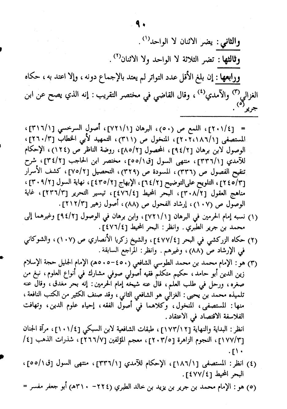 ورابعها: عن بلغ الأقل عدد التواتر لم يعتد بالإجماع دونه، وإلا اعتد به، حكاه الغزالي والآمدي وقال القاضي في (مختصر التقريب): إنه الذي يصح عن ابن جرير.