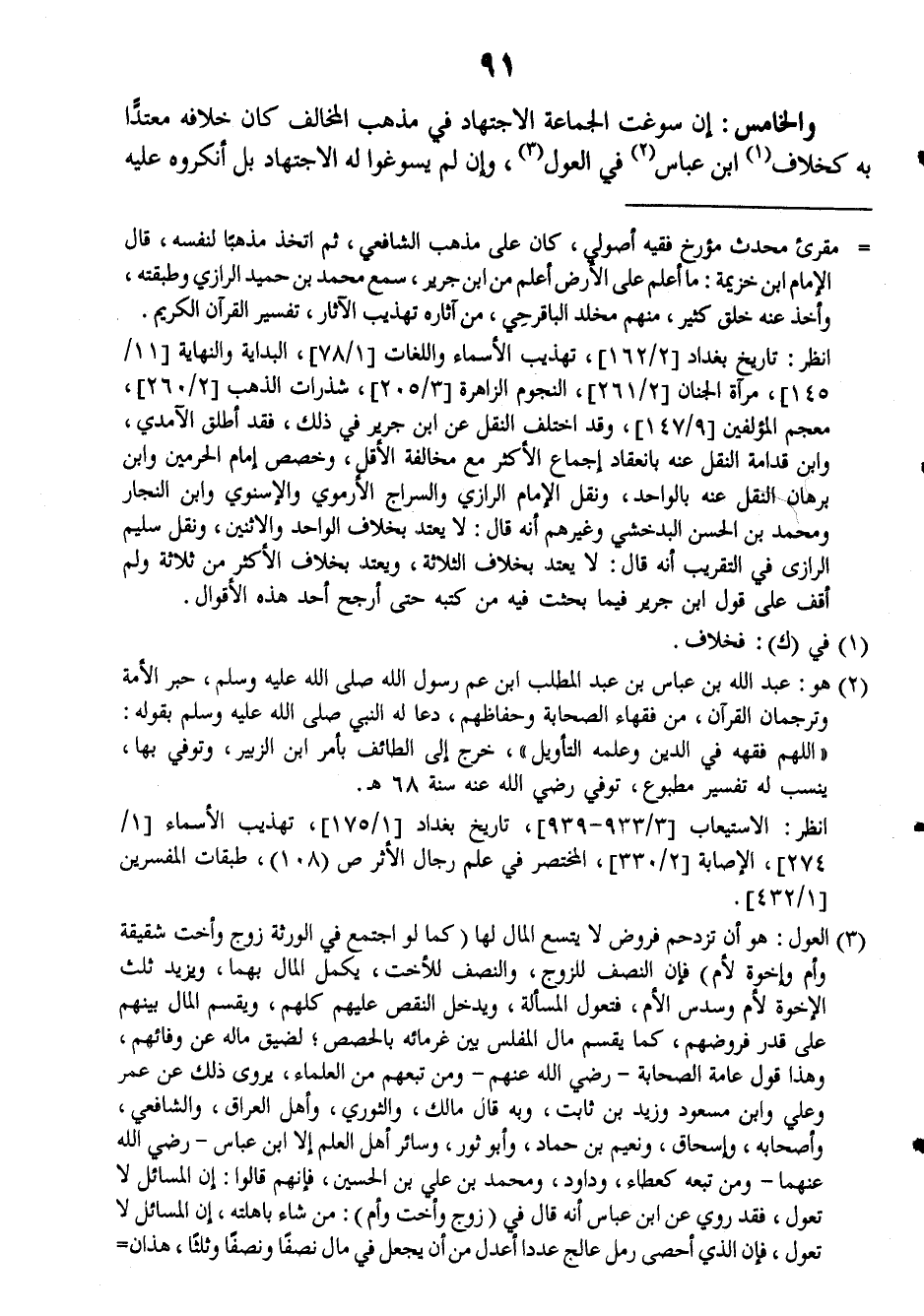 والخامس: إن سوغت الجماعة الاجتهاد في مذهب المخالف كان خلافه معتداً به كخلاف ابن عباس في العول، وإن لم يسوغوا له الاجتهاد بل أنكروه عليه
