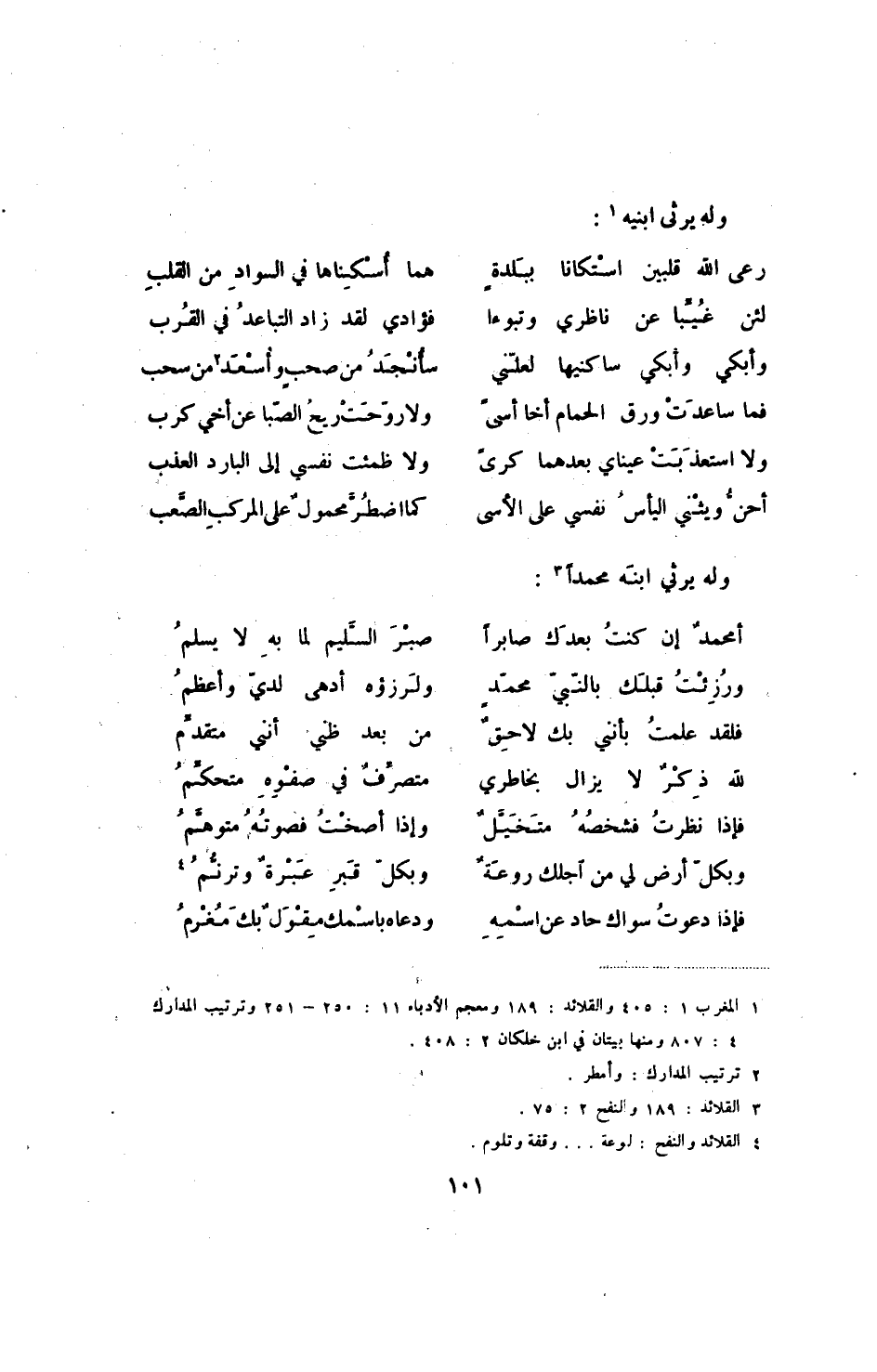 أحن ويثني نفسي على الأسى ... كما اضطر محمول على المركب الصعب وله يرثي ابنه محمدا: