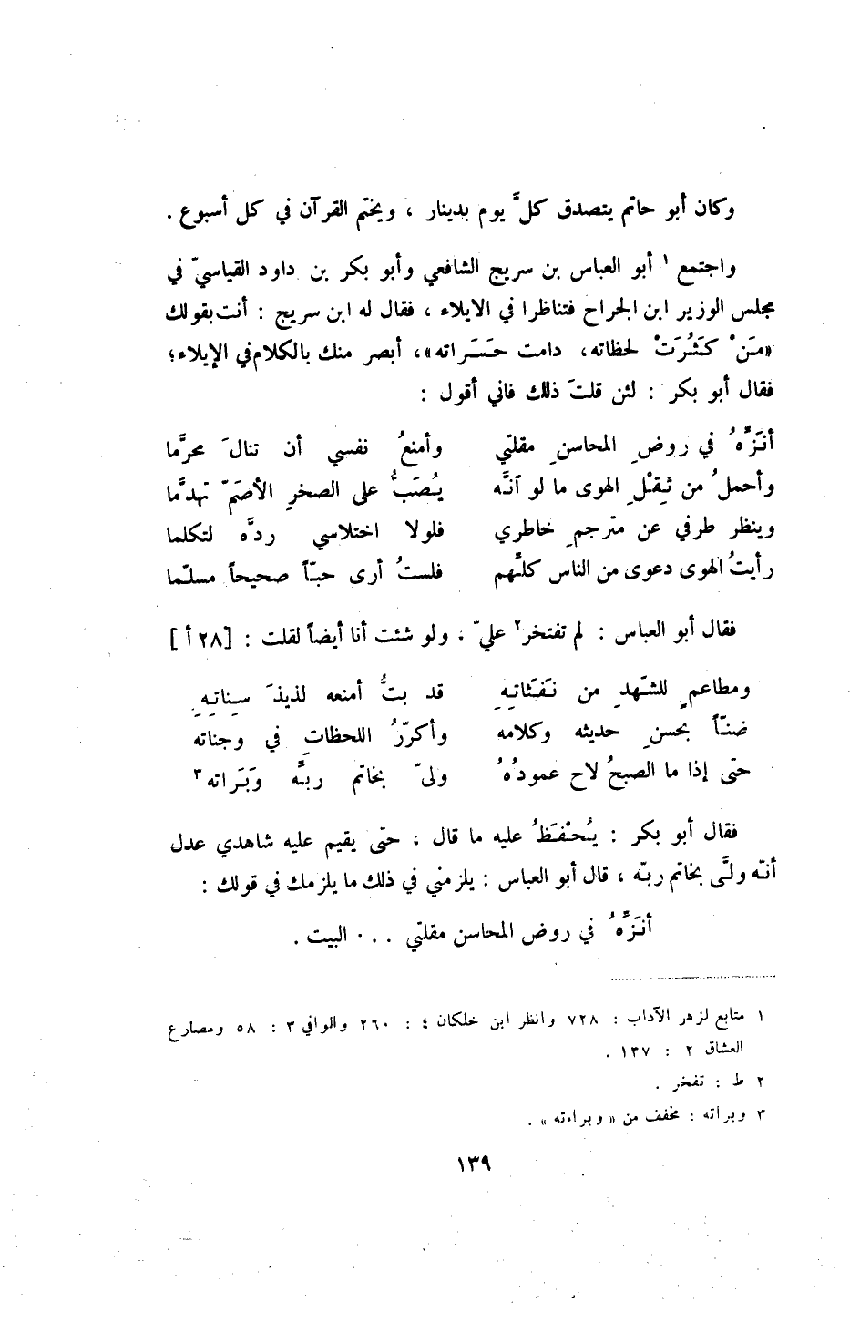 رأيت الهوى دعوى من الناس كلهم ... فلست أرى حبا صحيحا مسلما فقال أبو العباس: لم تفتخر علي، ولو شئت أنا أيضاً لقلت: [128 أ]