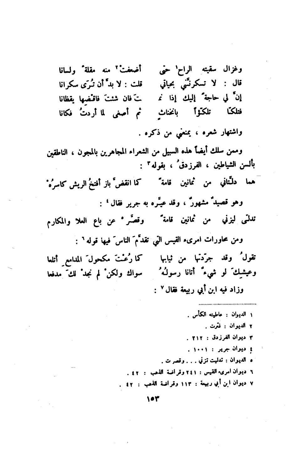 وممن سلك أيضاً هذه السبيل من الشعراء المجاهرين بالمجون، الناطقين بألسن الشياطين، الفرزدق، بقوله: