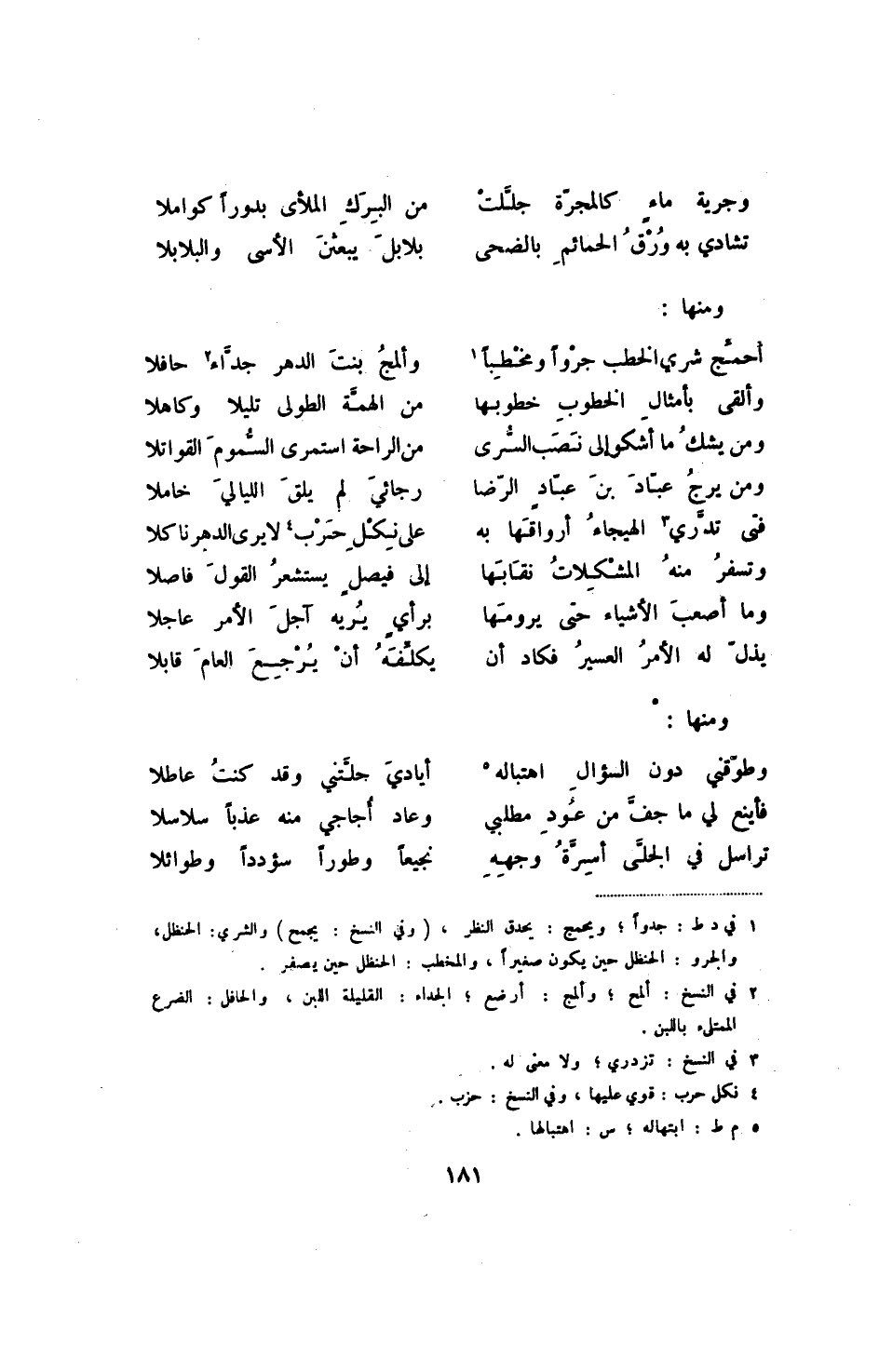 تشادي به ورق الحمائم بالضحى ... بلابل يبعثن الأسى والبلابلا ومنها: