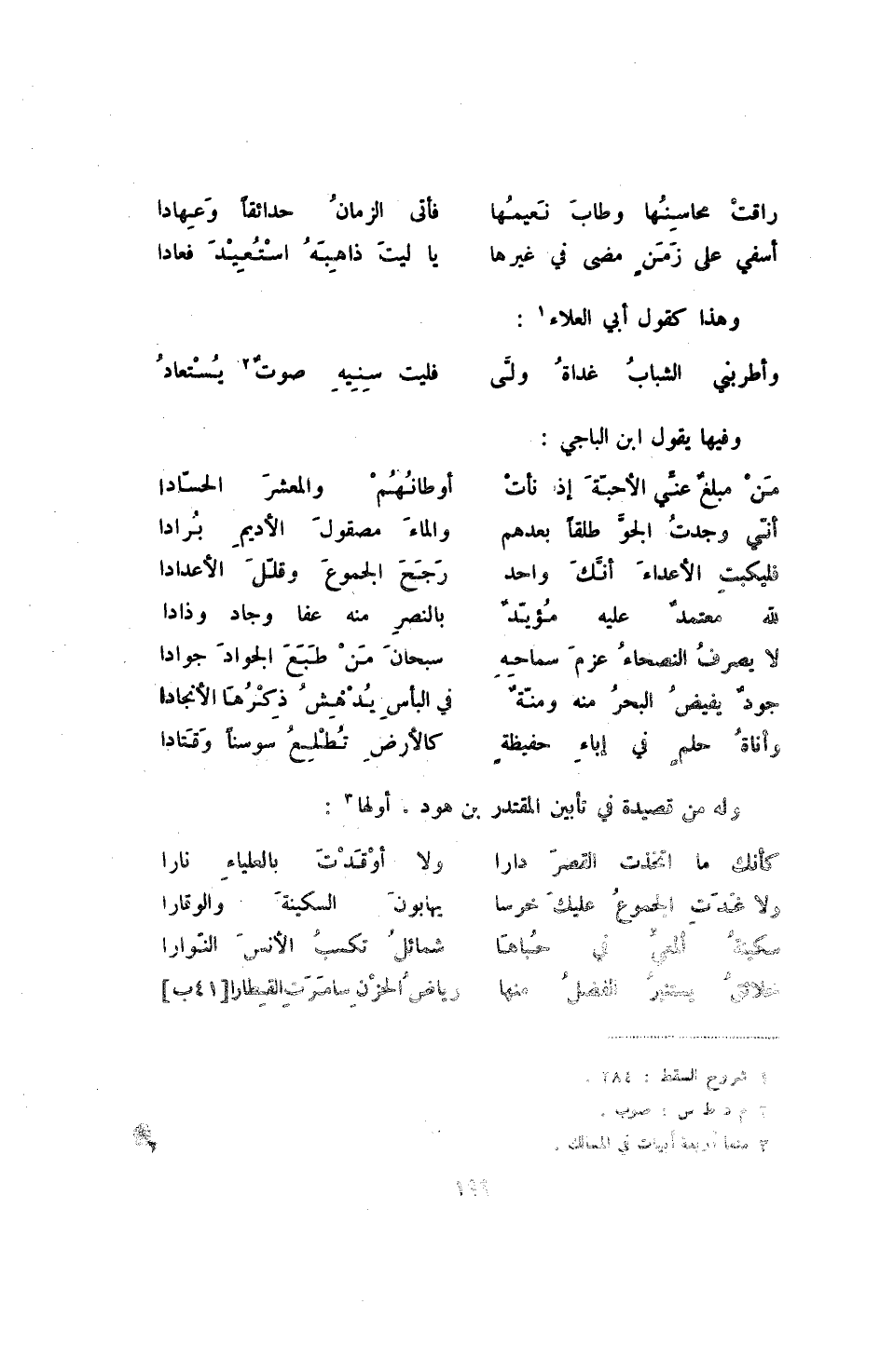 وأطربني الشباب غداة ولى ... فليت سنيه صوت يستعاد وفيها يقول ابن الباجي: