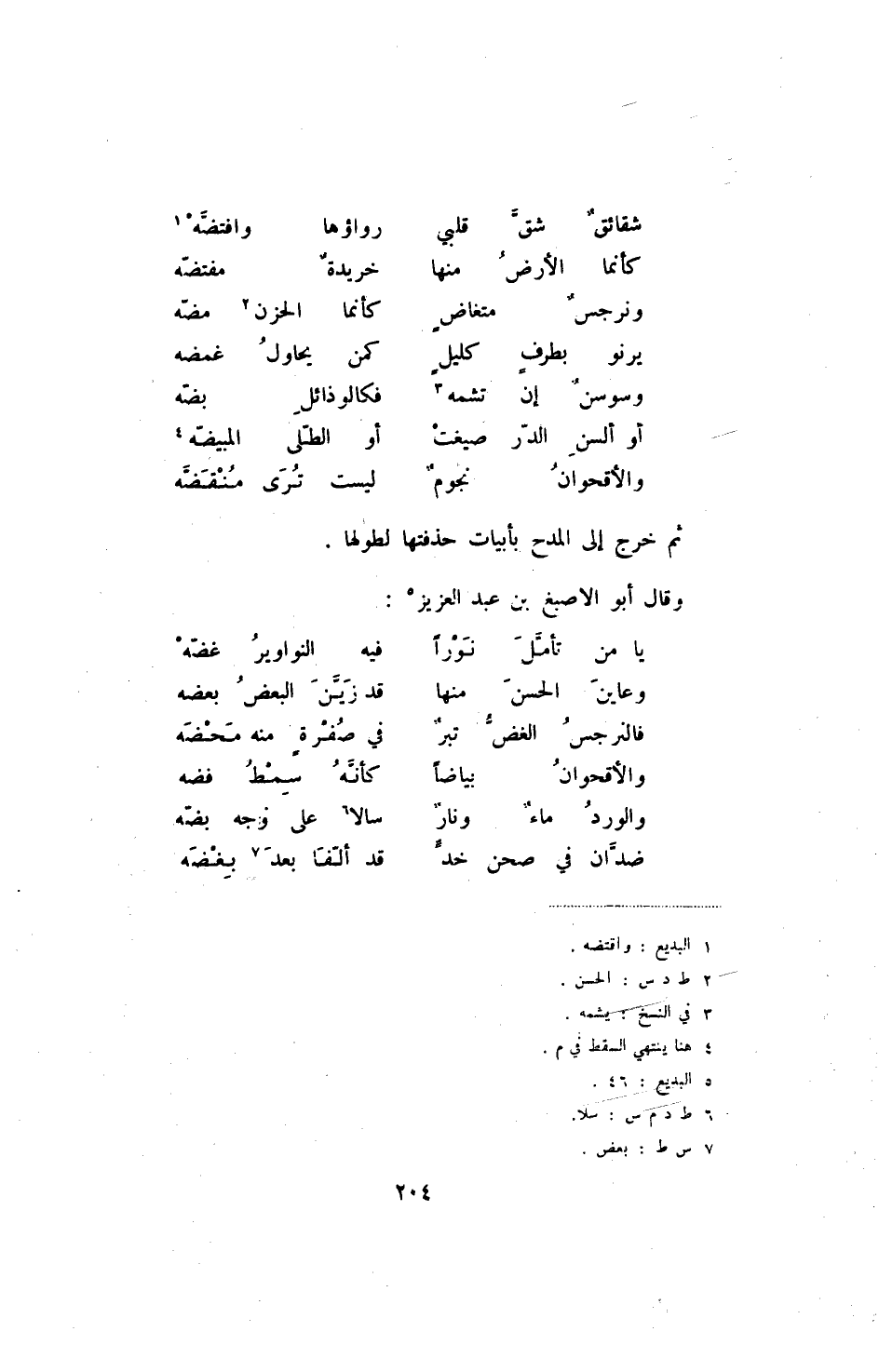 والأقحوان نجوم ... ليس ترى منقضه ثم خرج إلى المدح بأبيات حذفتها لطولها.