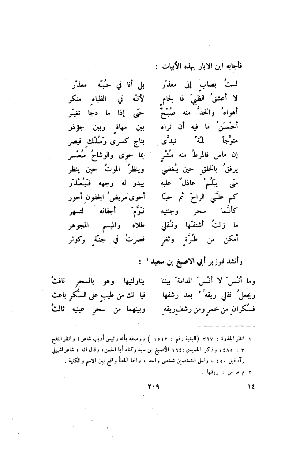 أمكن من طرةٍ وثغرٍ ... فصرت في جنةٍ وكوثر وأنشد للوزير أبي الاصبغ بن سعيد: