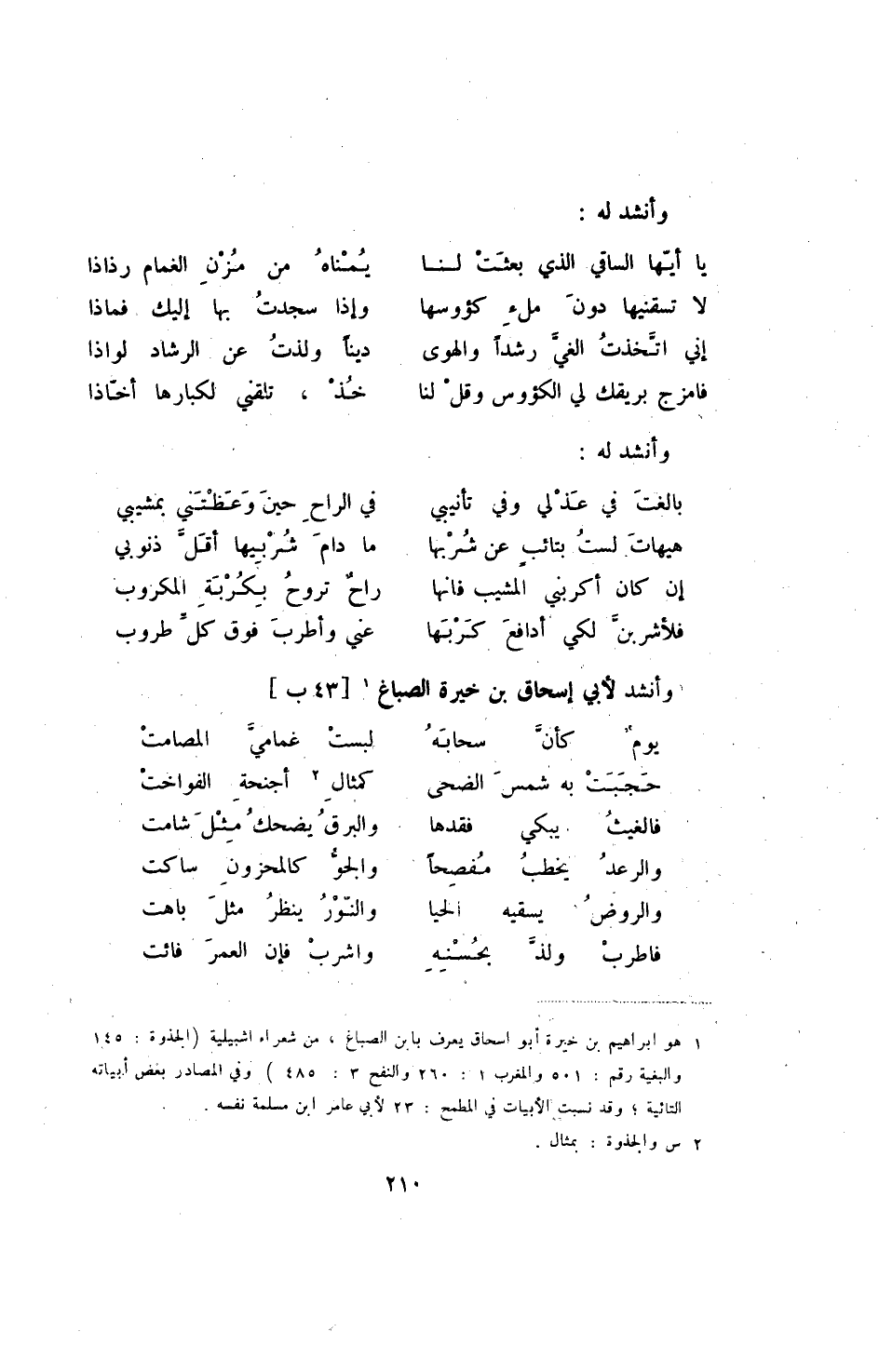 فلأشربن لكي أدافع كربها ... عني وأطرب فوق كل طروب وأنشد لأبي إسحاق بن خيرة الصباغ [43ب]