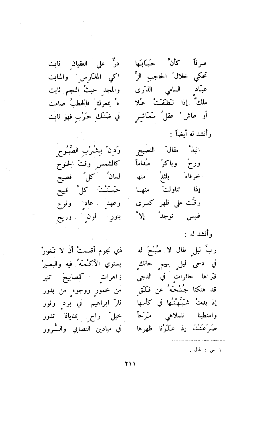 أو طاش عقل معاشرٍ ... في ضنك حرب فهو ثابت وأنشد له أيضاً: