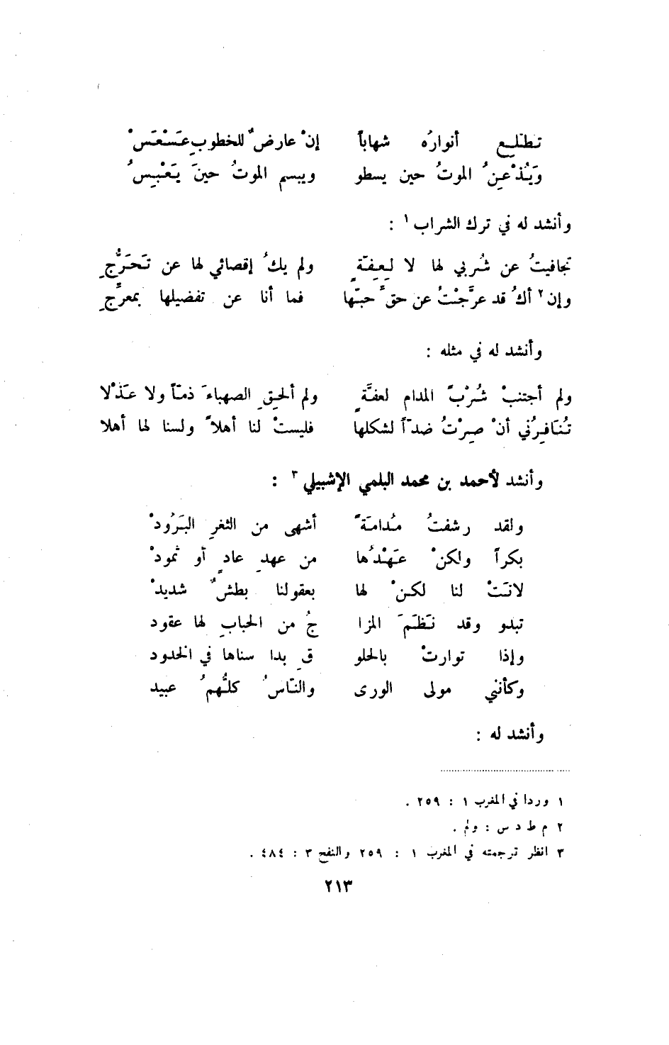 تنافرني أن صرت ضداً لشكلها ... فليست لنا أهلاً ولسنا لها أهلا وأنشد لأحمد بن محمد البلمي الإشبيلي: