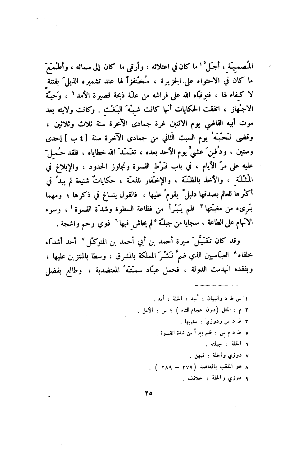 وقد كان تقيل سيرة أحمد بن أبي أحمد بن المتوكل أحد أشداء خلفاء العباسيين الذي ضم نشر المملكة بالمشرق، وسطا بالمنتزين عليها، وبفقده انهدمت الدولة، فحمل عباد سمته المعتضدية، وطالع بفضل