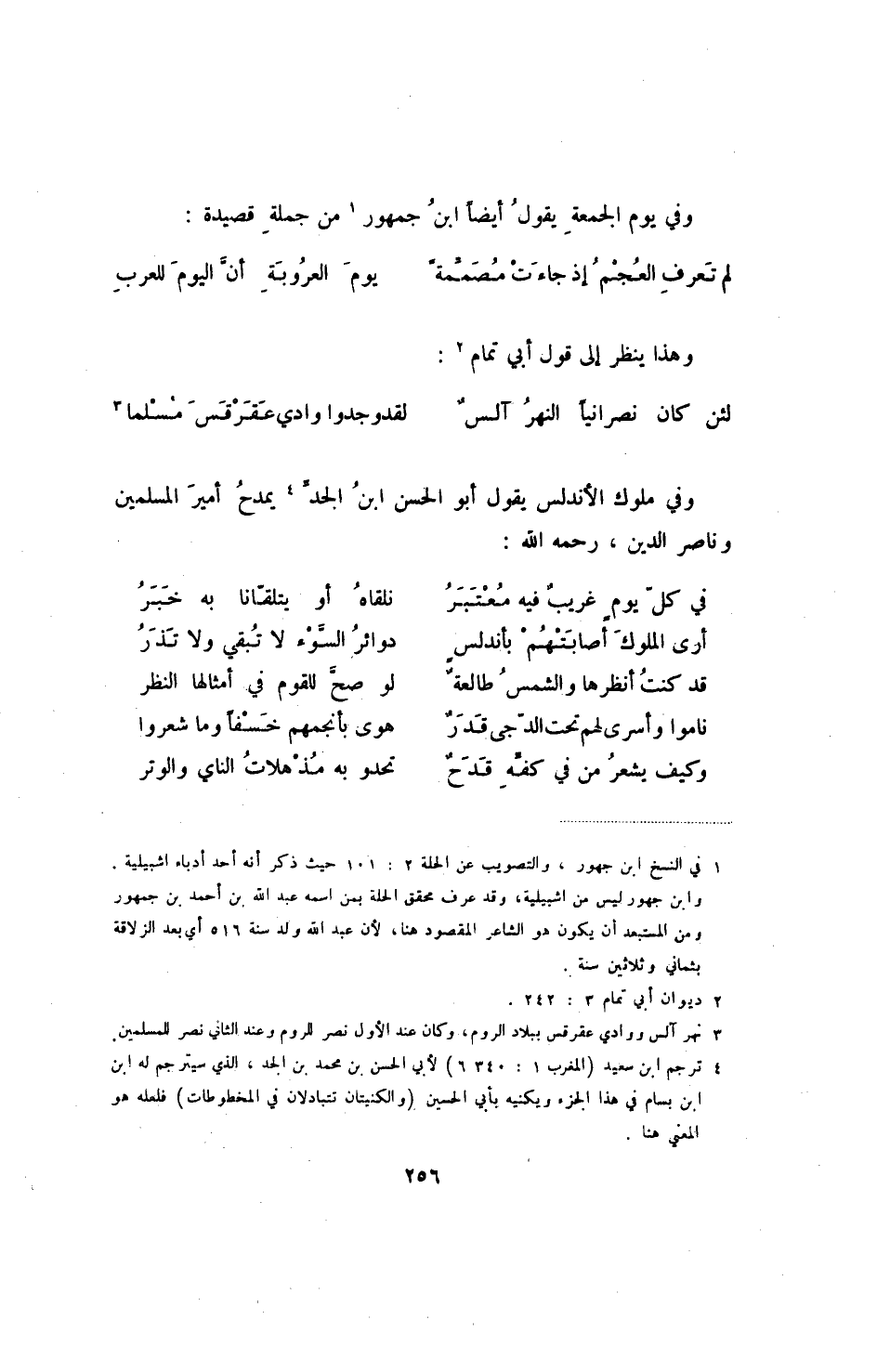 لم تعرف العجم إذ جاءت مصممةً ... يوم العروبة أن اليوم للعرب وهذا ينظر إلى قول أبي تمام: