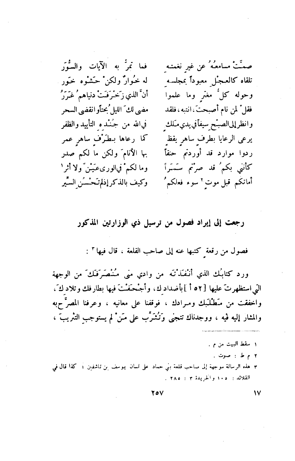 أمانكم قبل موتٍ سوء فعلكم ... وكيف بالذكر إذ لم تحسن السير رجعت إلى إيراد فصول من ترسيل ذي الوزارتين المذكور