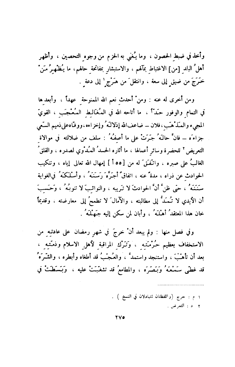 وفي فصل منها: ولم يبعد أن خرج في شهر رمضان على عادته من الاستخفاف بعظيم حرمته، وترك المراقبة لأهل الإسلام وذمته، بعد أن تأهب، واستنجد واستمد، والعجب قد أطغاه وأبطره، والشره قد غطى سمعه وبصره، والمطامع قد تشغبت عليه، وبسطت في
