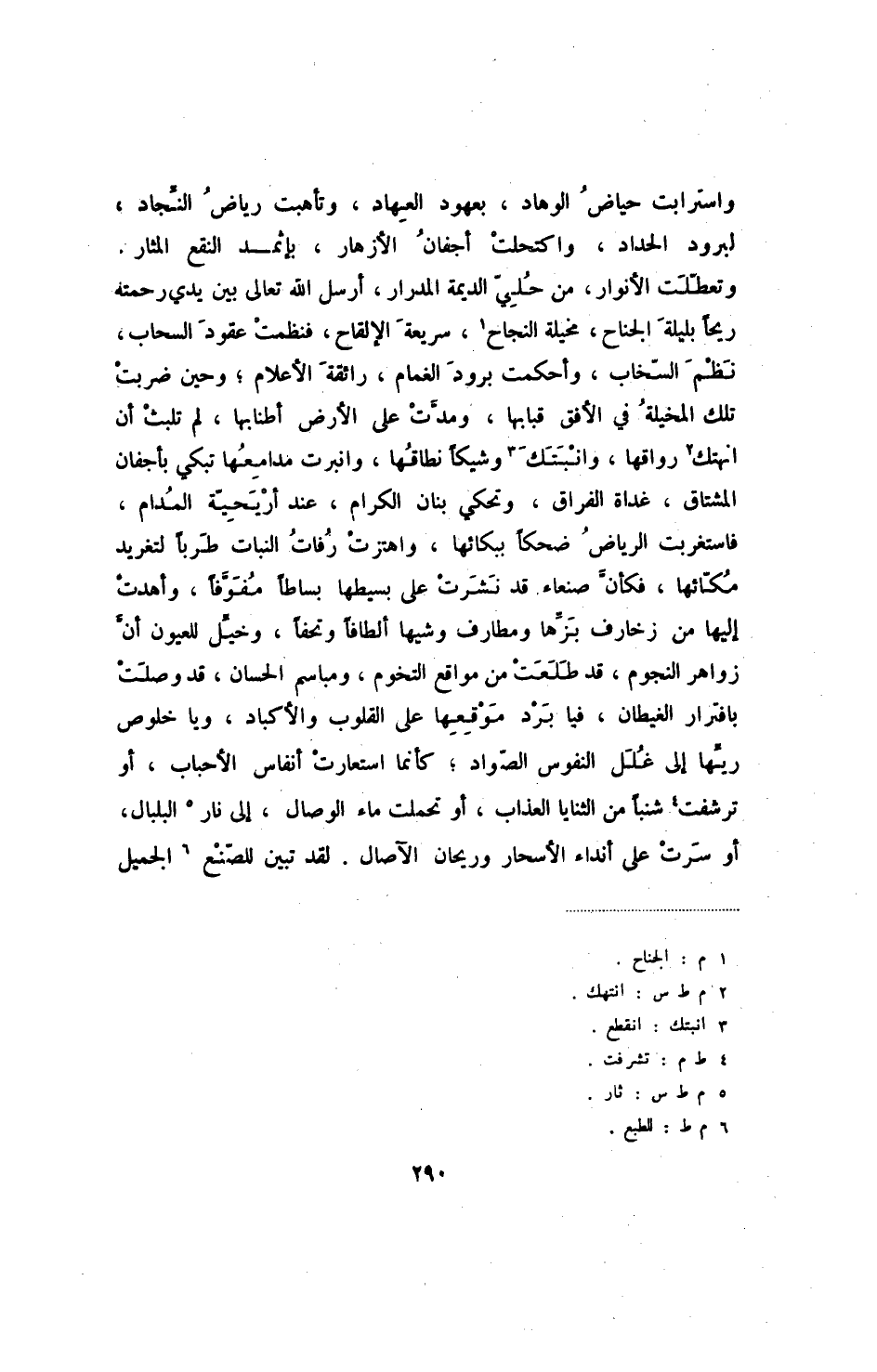 واسترابت حياض الوهاد، بعهود العهاد، وتأهبت رياض النجاد، لبرود الحداد، واكتحلت أجفان الأزهار، بإثمد النقع المثار، وتعطلت الأنوار، من حلي الديمة المدرار، أرسل الله تعالى بين يدي رحمته ريحاً بليلة النجاح، سريعة الإلقاح، فنظمت عقود السحاب، نظم السخاب، وأحكمت برود الغمام، رائقة الأعلام؛ وحين ضربت تلك المخيلة في الأفق قبابها، ومدت على الأرض أطنابها، لم تلبث أن انهتك رواقها، وانبتك وشيكاً نطاقها، وانبرت مدامعها تبكي بأجفان المشتاق، غداة الفراق، وتحكي بنان الكرام، عند أريحية المدام، فاستغربت الرياض ضحكاً ببكائها، واهتزت رفات النبات طرباً لتغريد مكائها، فكأن صنعاء قد نشرت على بسيطها بساطاً مفوفاً، وأهدت إليها من زخارف بزها ومطارف وشيهاً ألطافاً وتحفاً، وخيل للعيون أن زواهر النجوم، قد طلعت من مواقع التخوم، ومباسم الحسان، قد وصلت بافترار الغيطان، فيا برد موقعها على القلوب والأكباد، ويا خلوص ريها إلى غلل النفوس الصواد؛ كأنما استعارت أنفاس الأحباب، أو ترشفت شنباً من الثنايا العذاب، أو تحملت ماء الوصال، إلى نار البلبال، أو سرت على أنداء الأسحار وريحان الآصال. لقد تبين للصنع الجميل